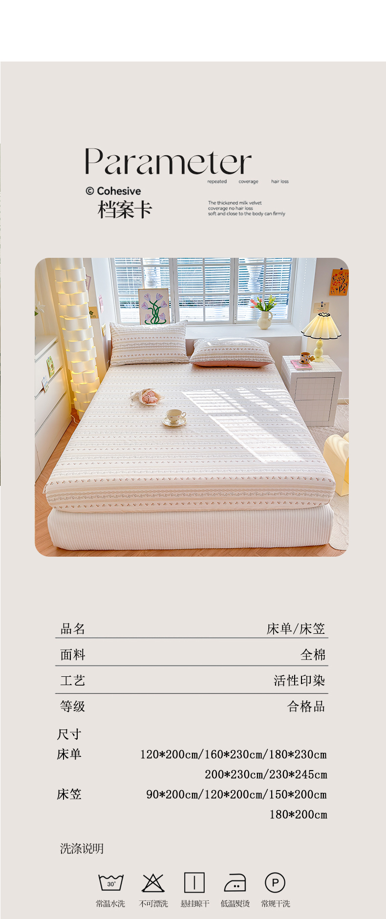 商品名称:清雅福 2024新款全棉13372小清新单床笠 樱桃花
