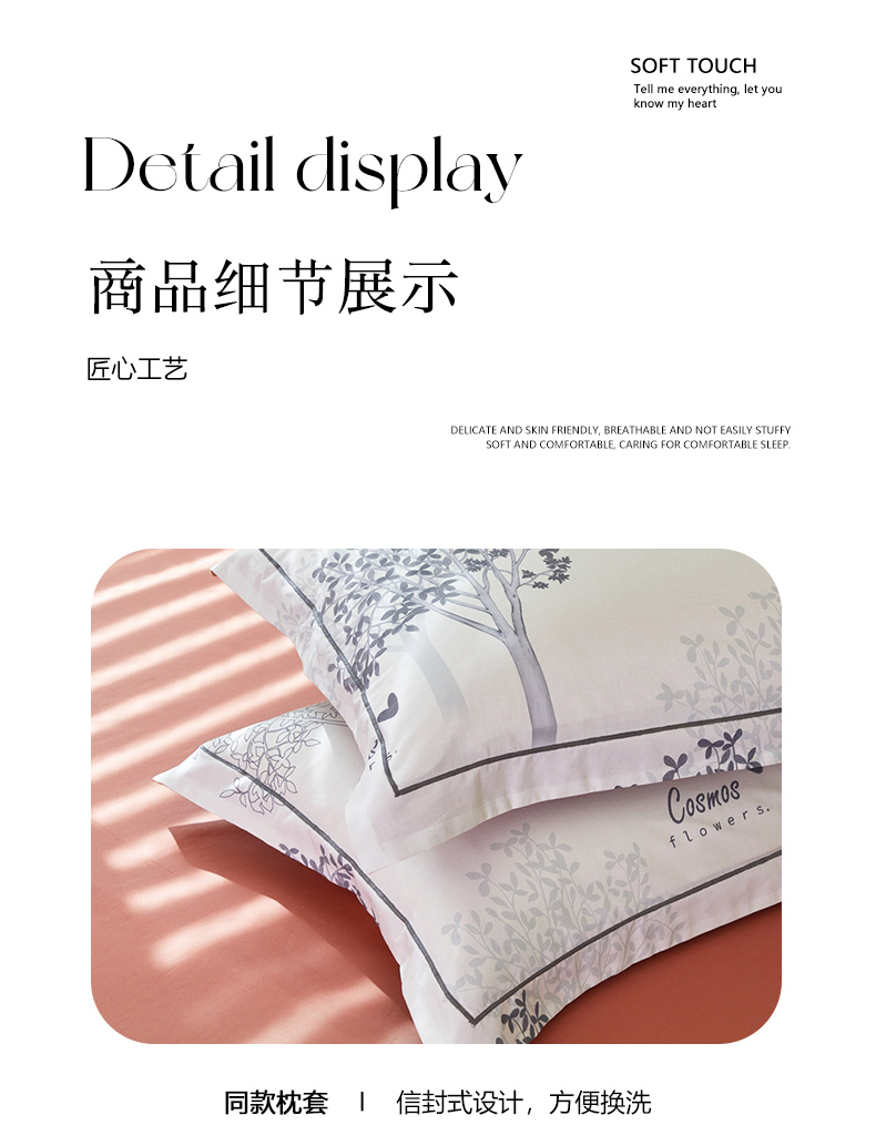 启航家居 2025春夏全棉铂金棉数码印花四件套 云思木想灰