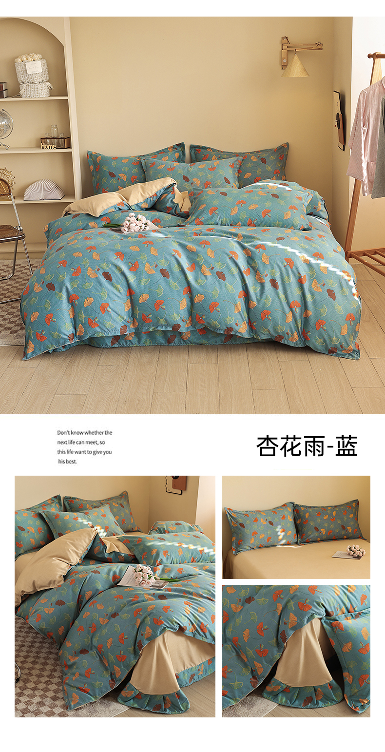 慕克斯 2024新款160克磨毛双层纱四件套 杏花雨-蓝