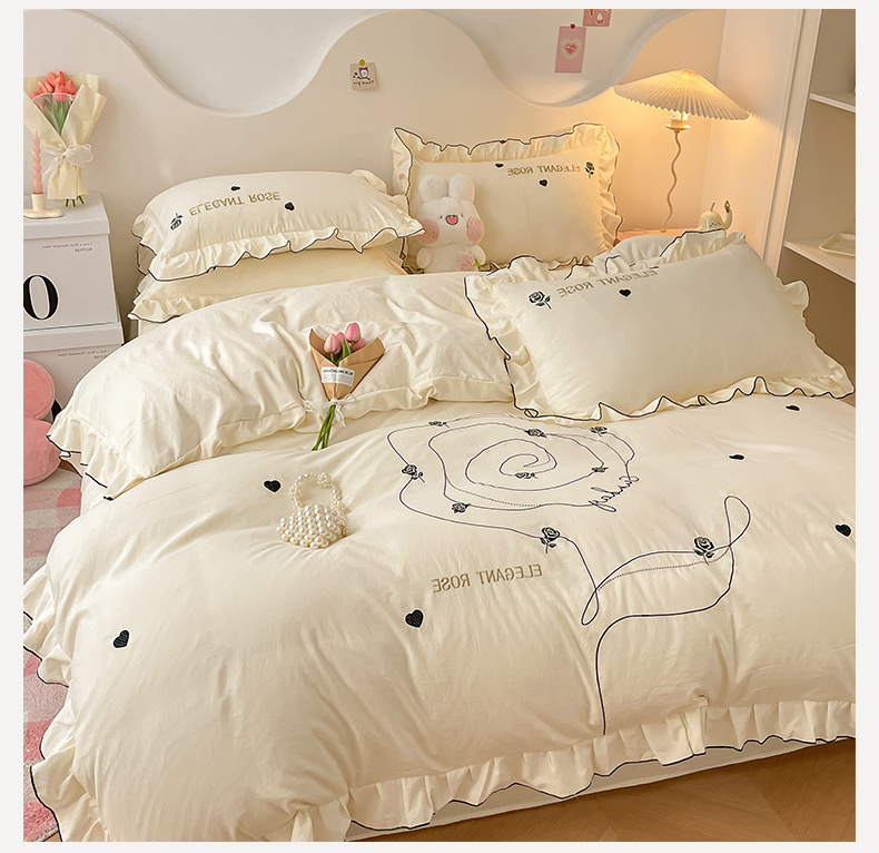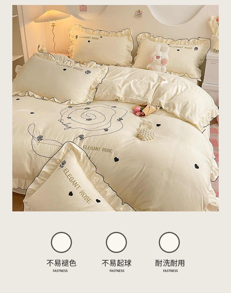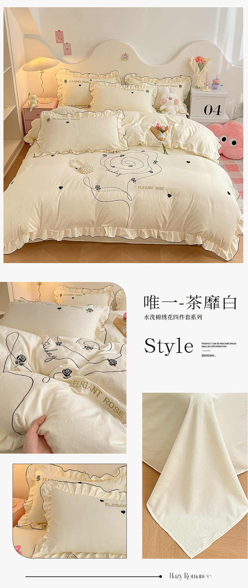 AB家纺 2024新款水洗棉绣花四件套-唯一系列 唯一茶靡白