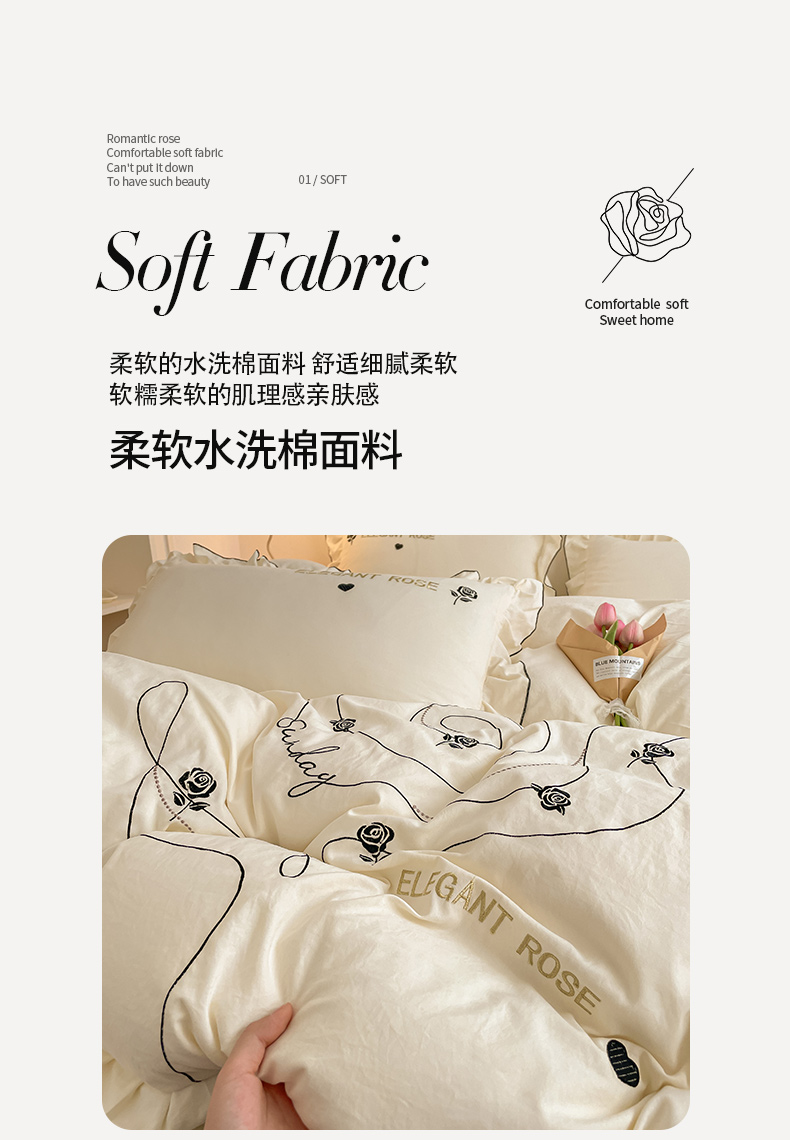 商品名称:AB家纺 2024新款水洗棉绣花四件套-唯一系列 唯一茶靡白