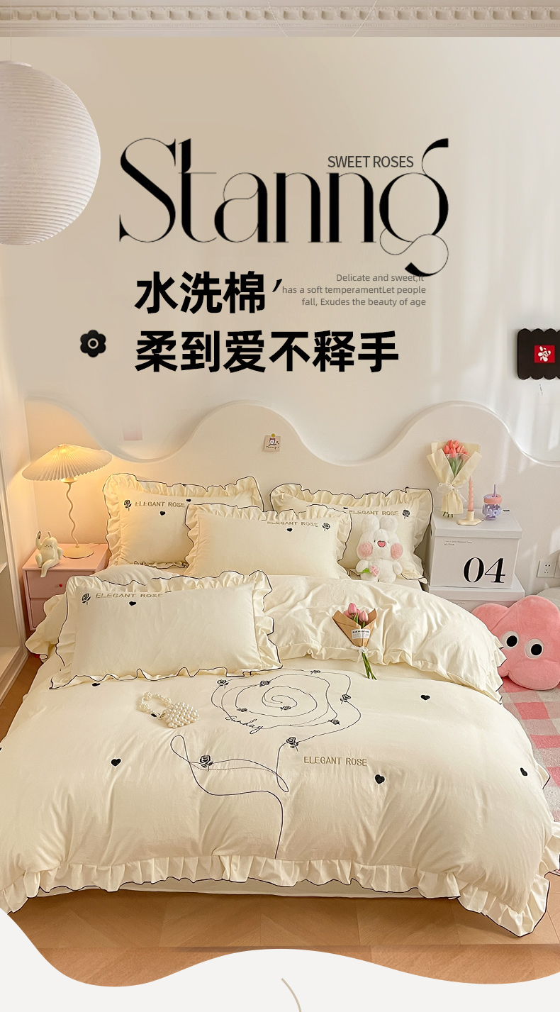 (总)ab家纺 2023新款满绣水洗棉四件套,本白,鹅黄,浅粉,浅灰,浅蓝,浅紫,水兰