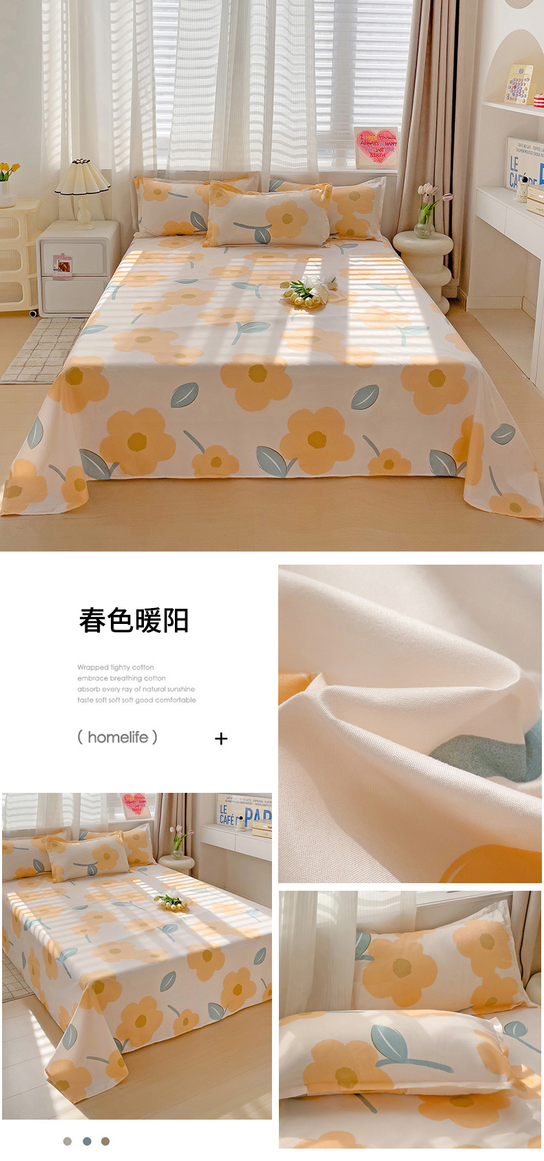 楠沐家纺 2025年新款亲肤水洗棉芦荟棉印花床单系列 春色暖阳