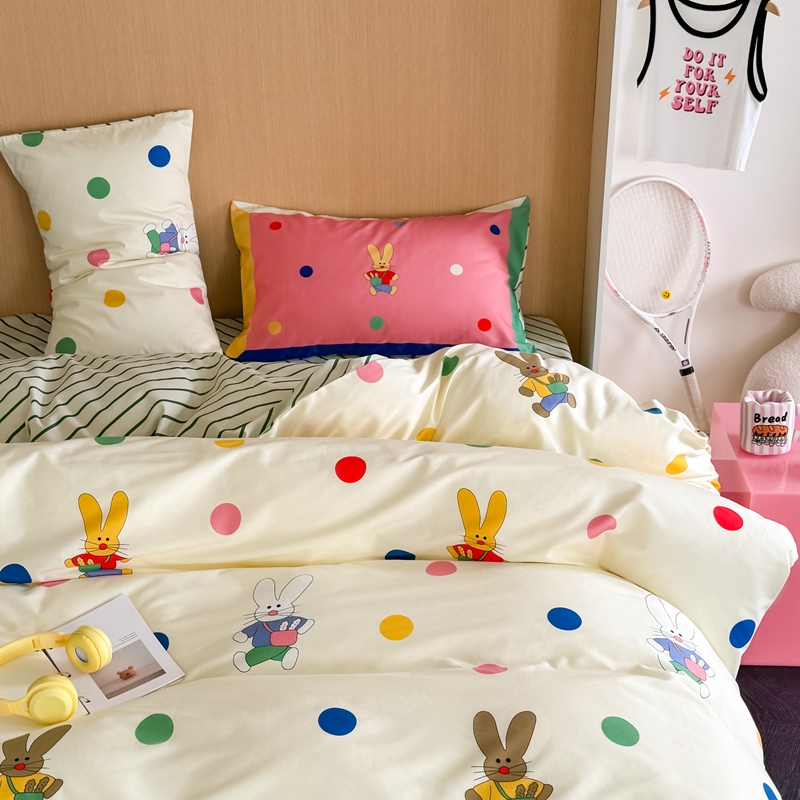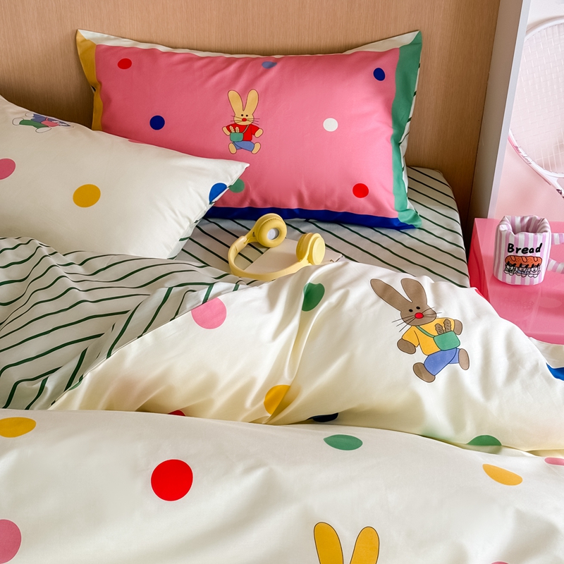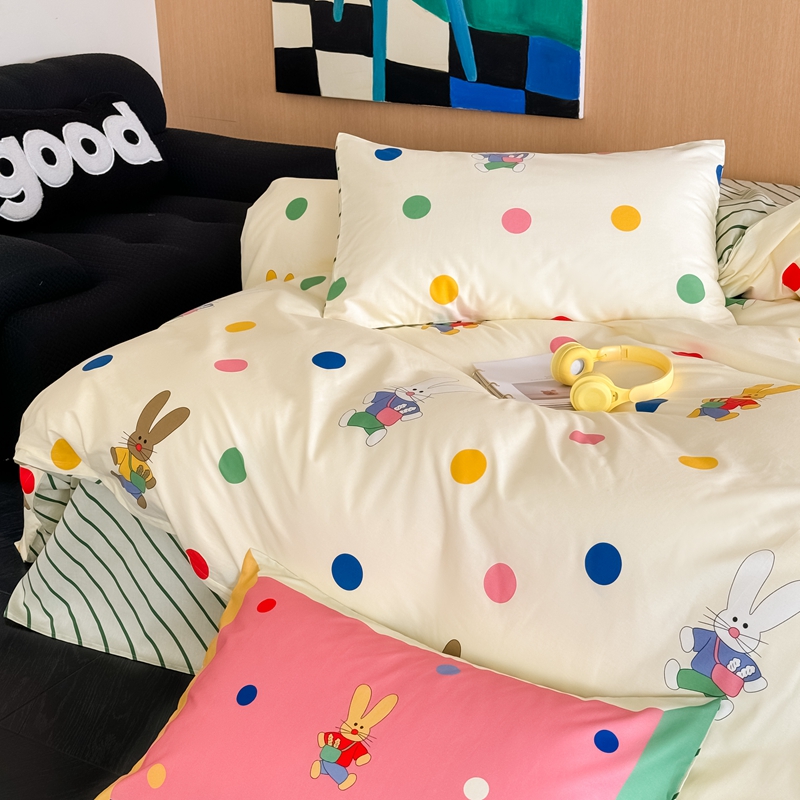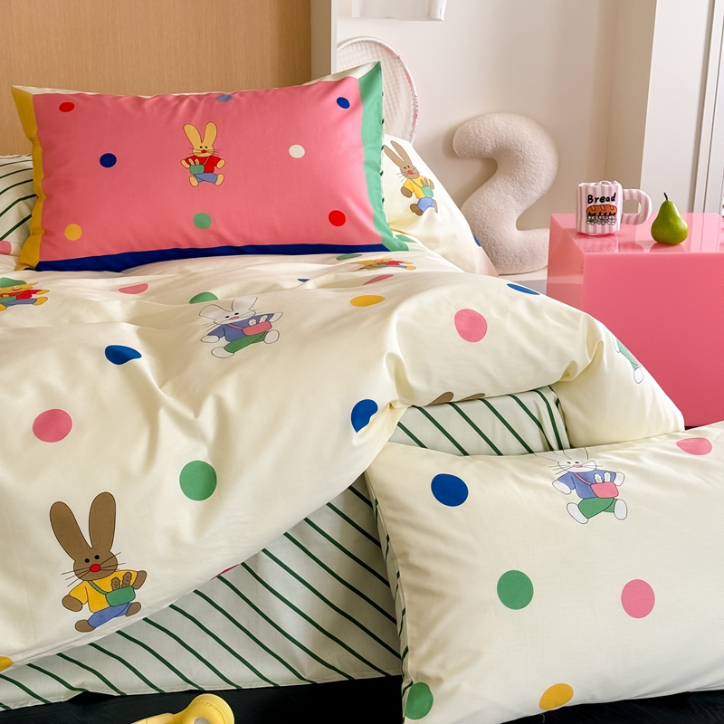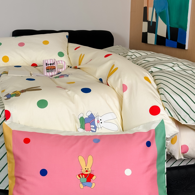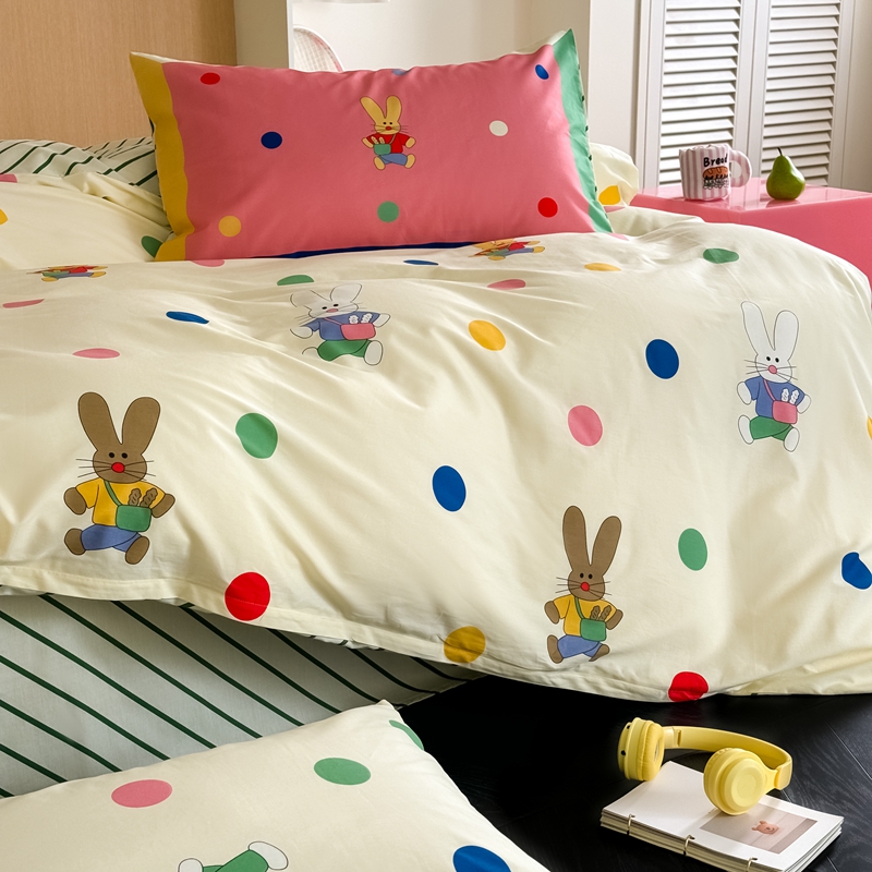 时年 2024新款全棉数码大版趣味系列四件套 波点兔