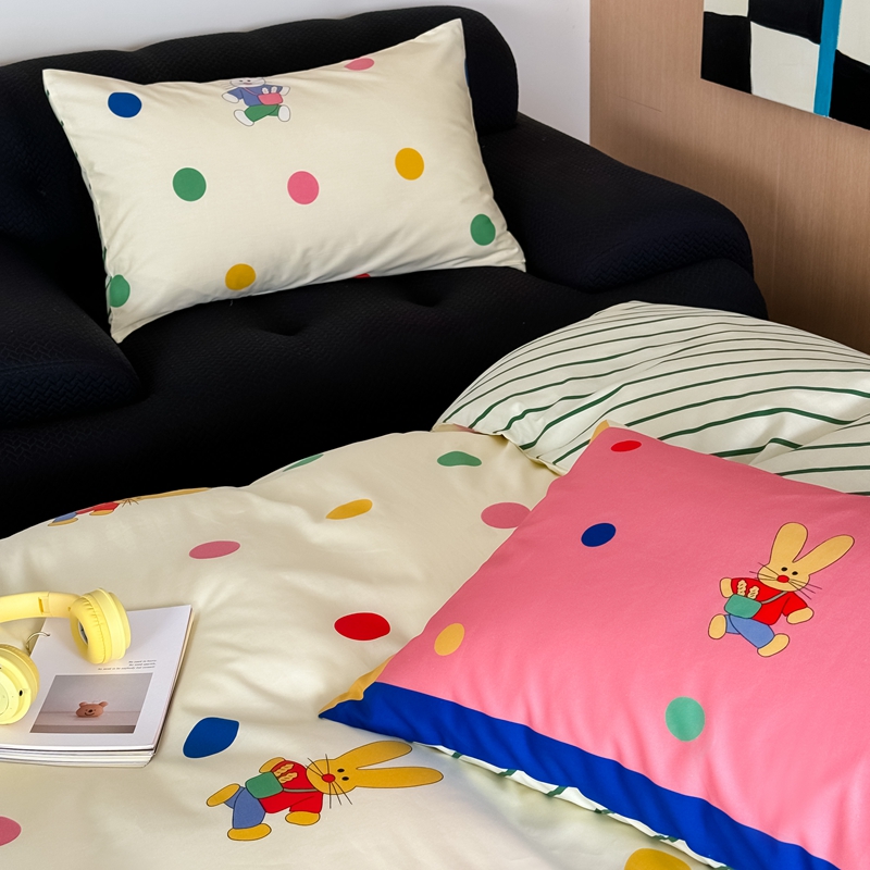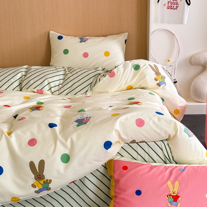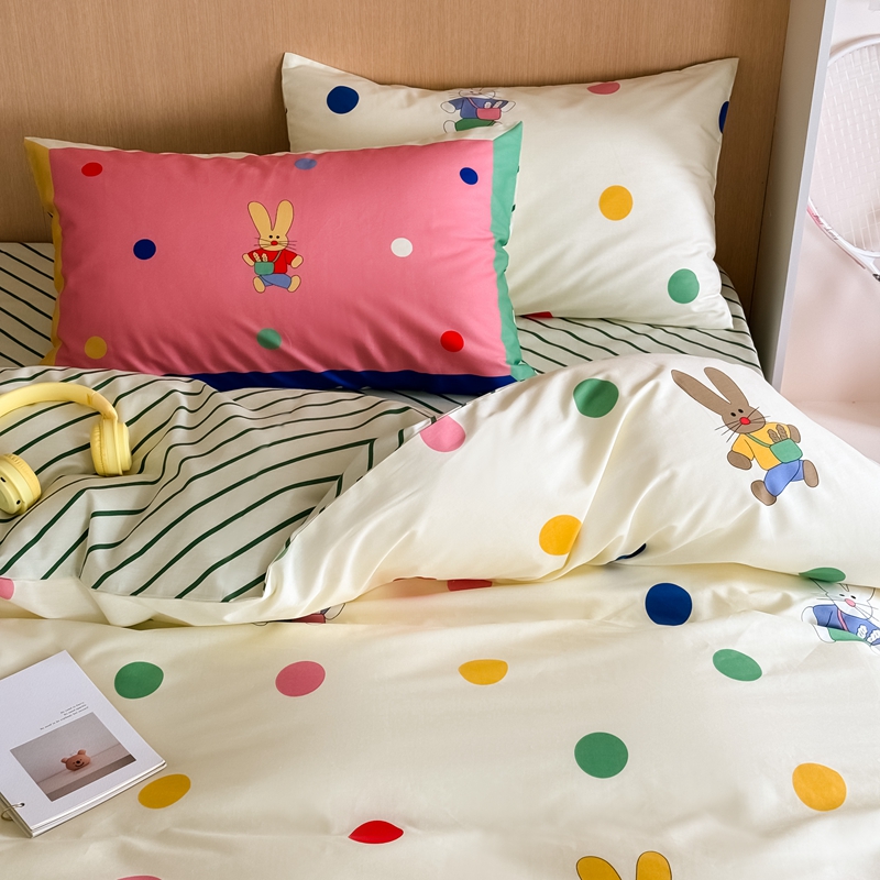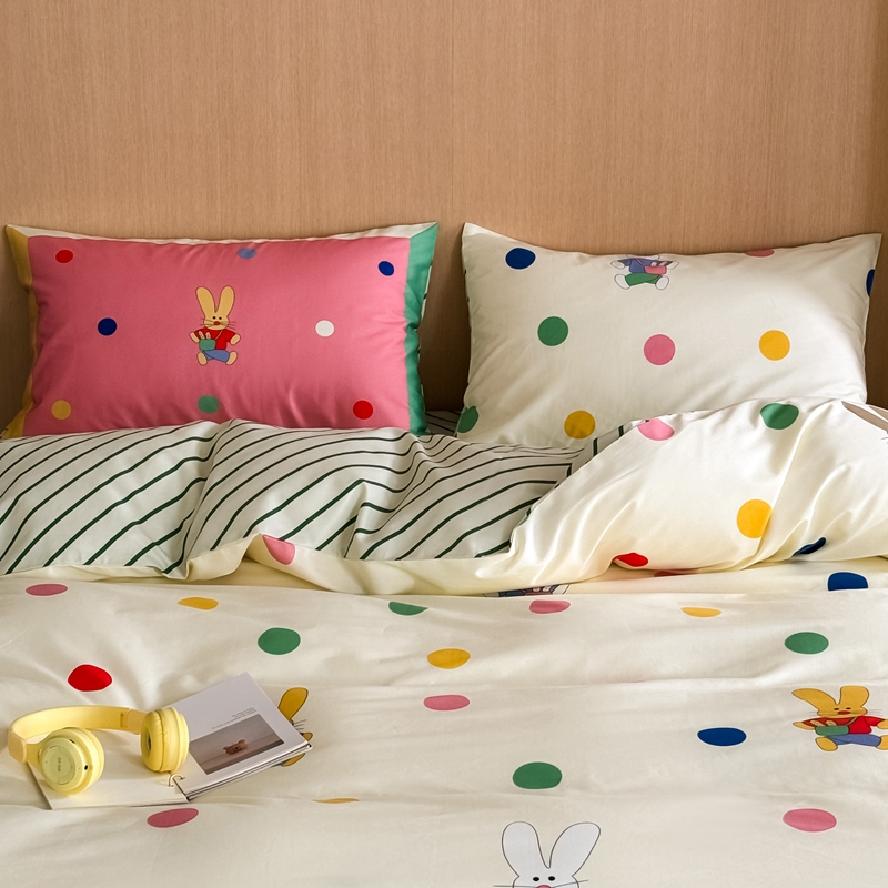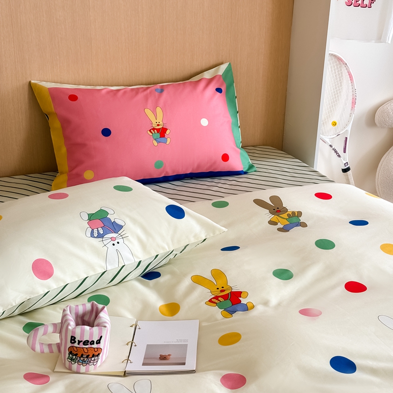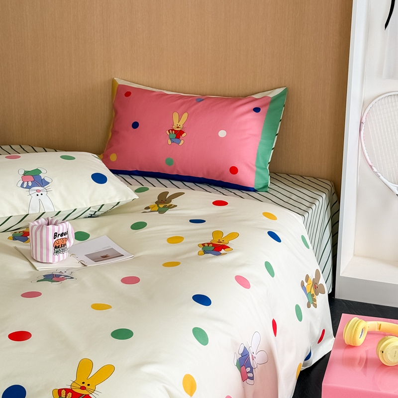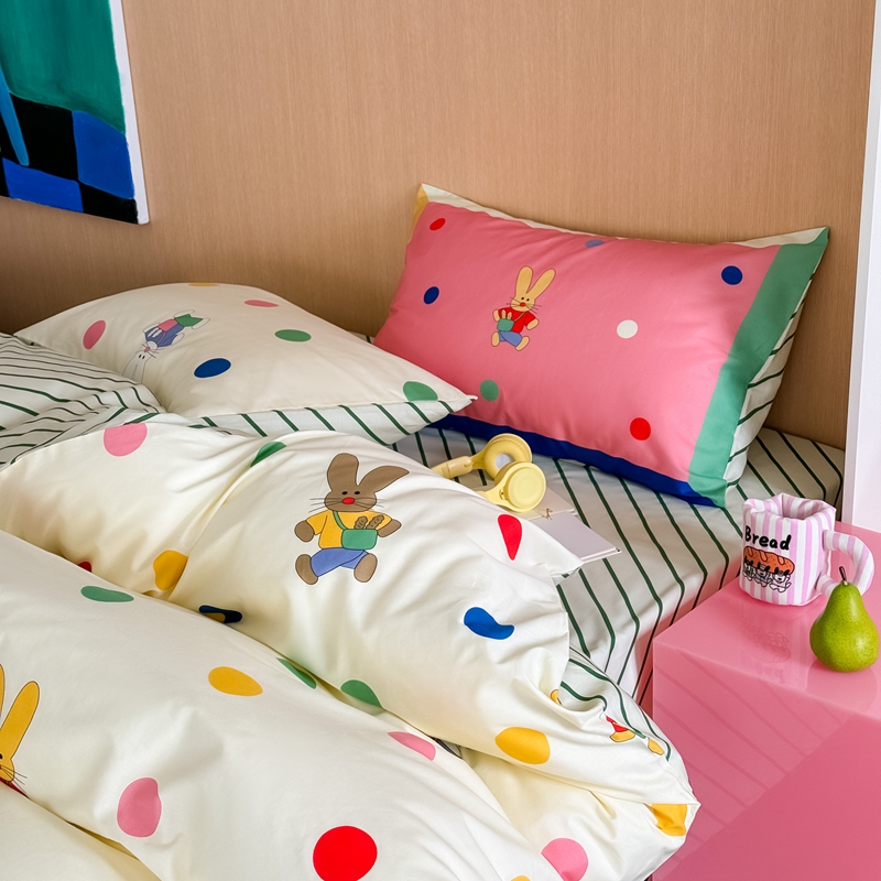 时年 2024新款全棉数码大版趣味系列四件套 波点兔