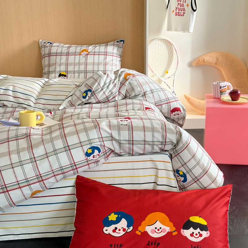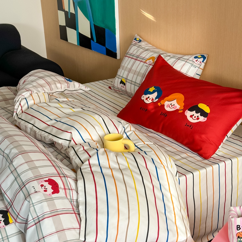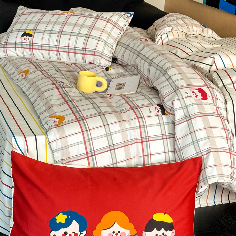 (总)时年 2021新款40S全棉印花四件套小可爱系列,贝尔先生,彩虹云朵,花西子,欢乐字母,金刚,奇思妙想,气球皮皮,树林生活