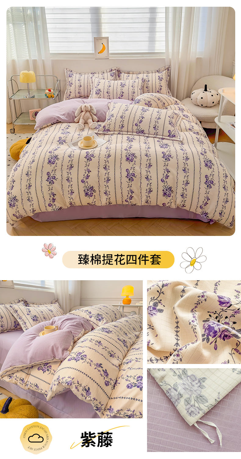 商品名称:雅慕家居 2024新款A类臻棉提花清新风四件套柔软亲肤 紫藤