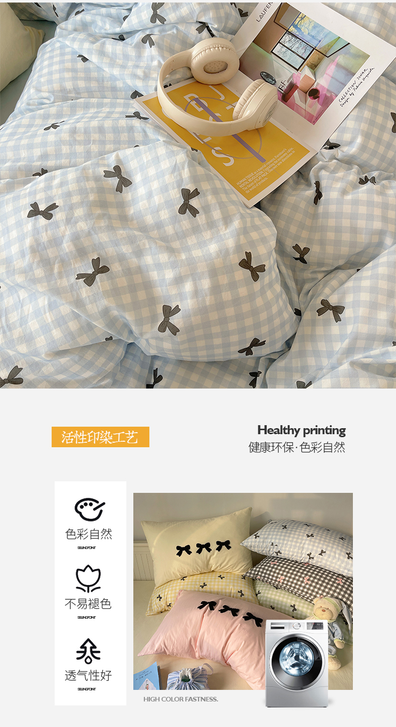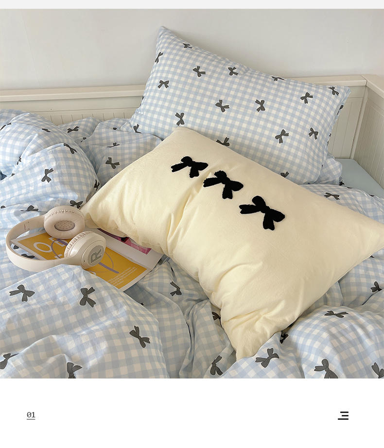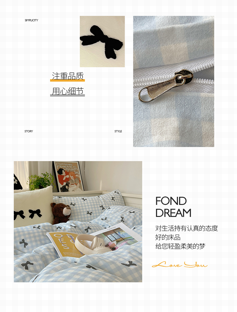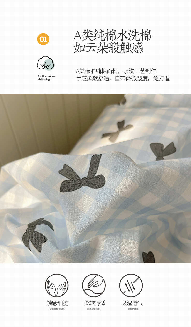 当前位置: 91家纺网 > 商品网购 > 床品套件 > 四件套 > 全棉普通四件套 > 桃子家居 2024新款A类纯棉水洗棉毛巾绣蝴蝶结少女系列四件套 水洗棉-蝴蝶结蓝黑+蓝黄