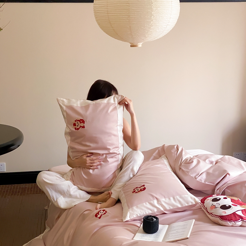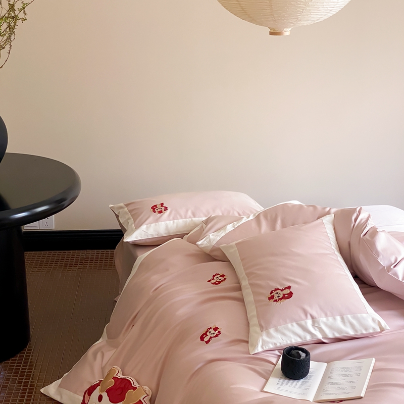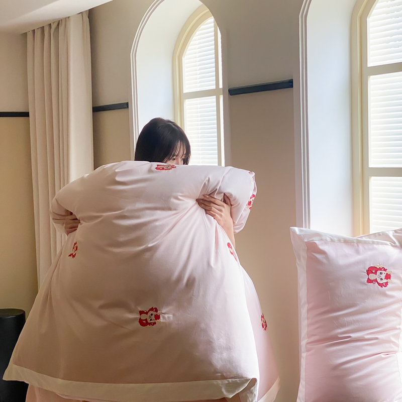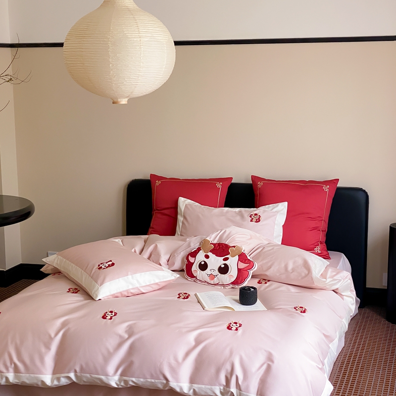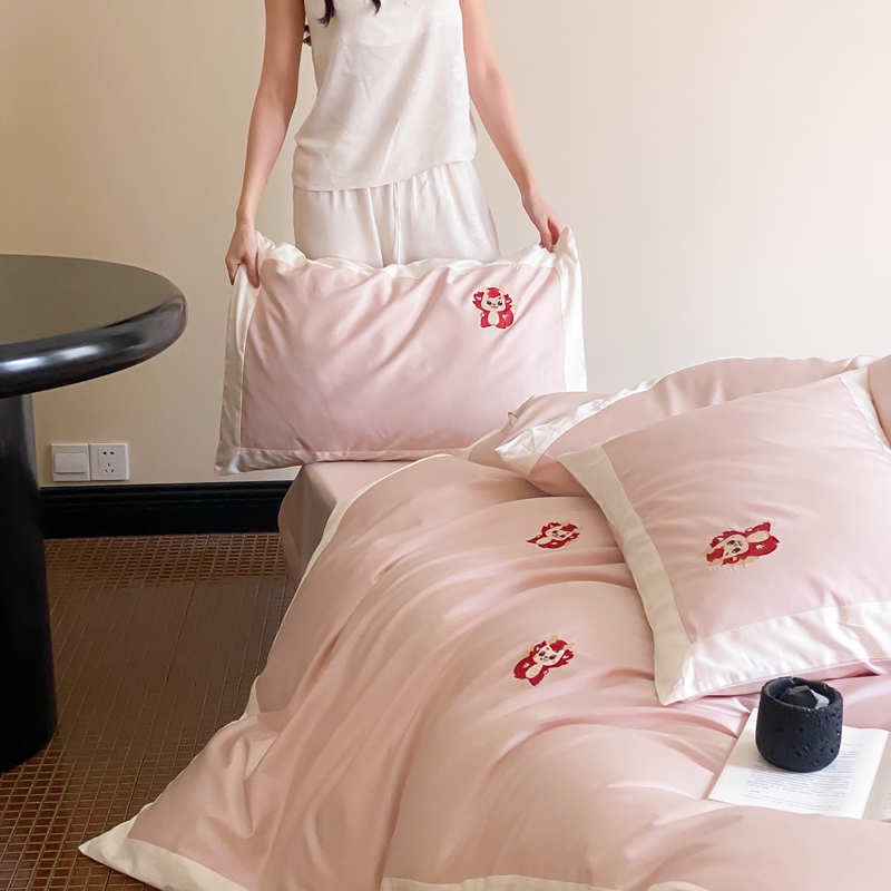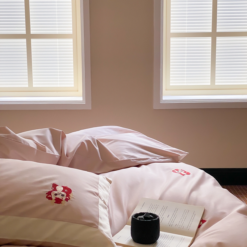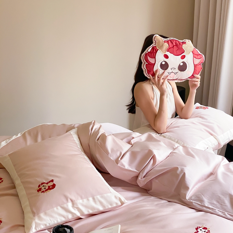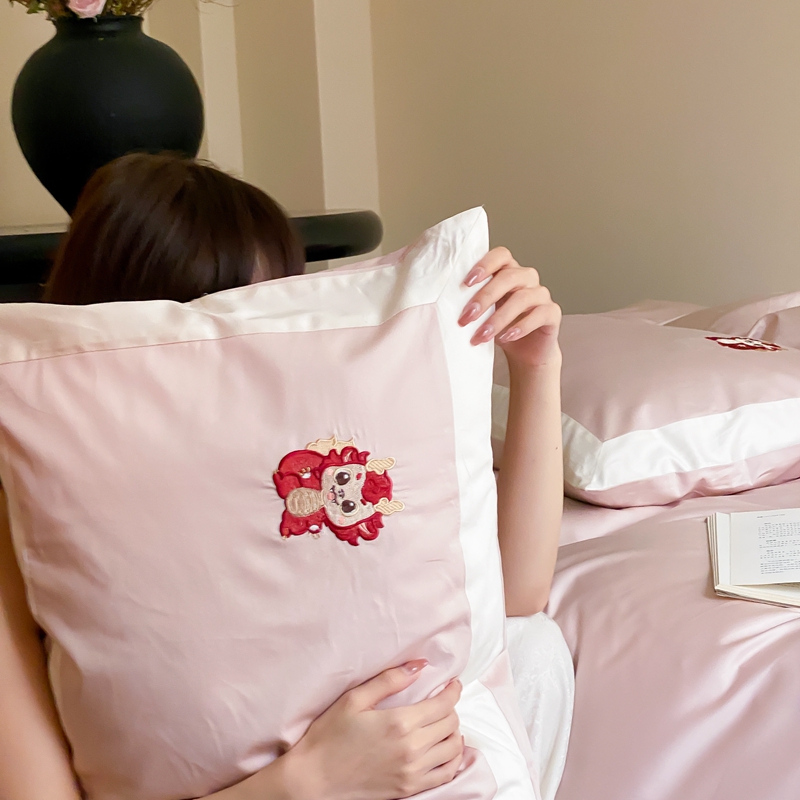 商品名称:曼布缇 2025春夏新品100s长绒棉绣花四件套-万事兴龙 万事兴龙-粉