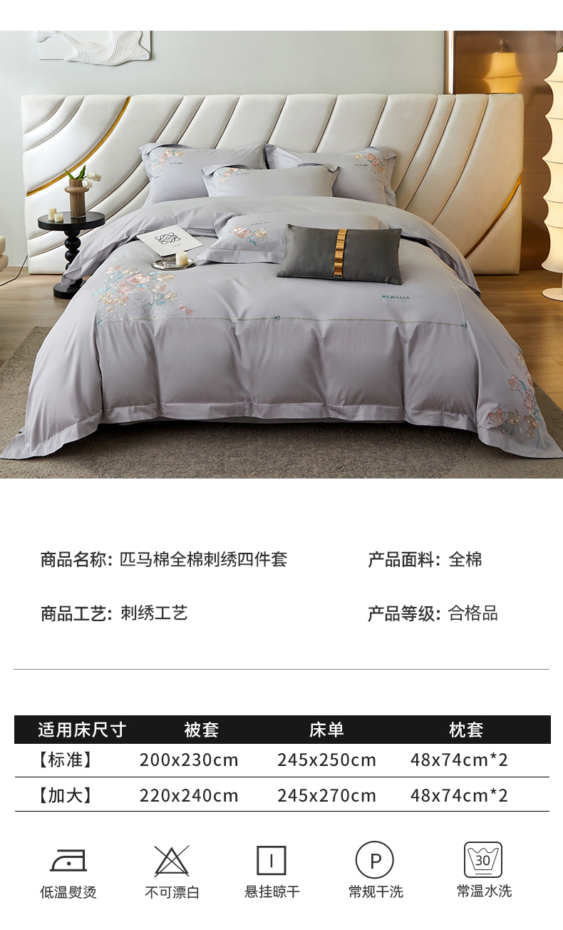 宏羽纺2024新款高支高密全棉刺绣四件套-艾伦系列 艾伦 银月光