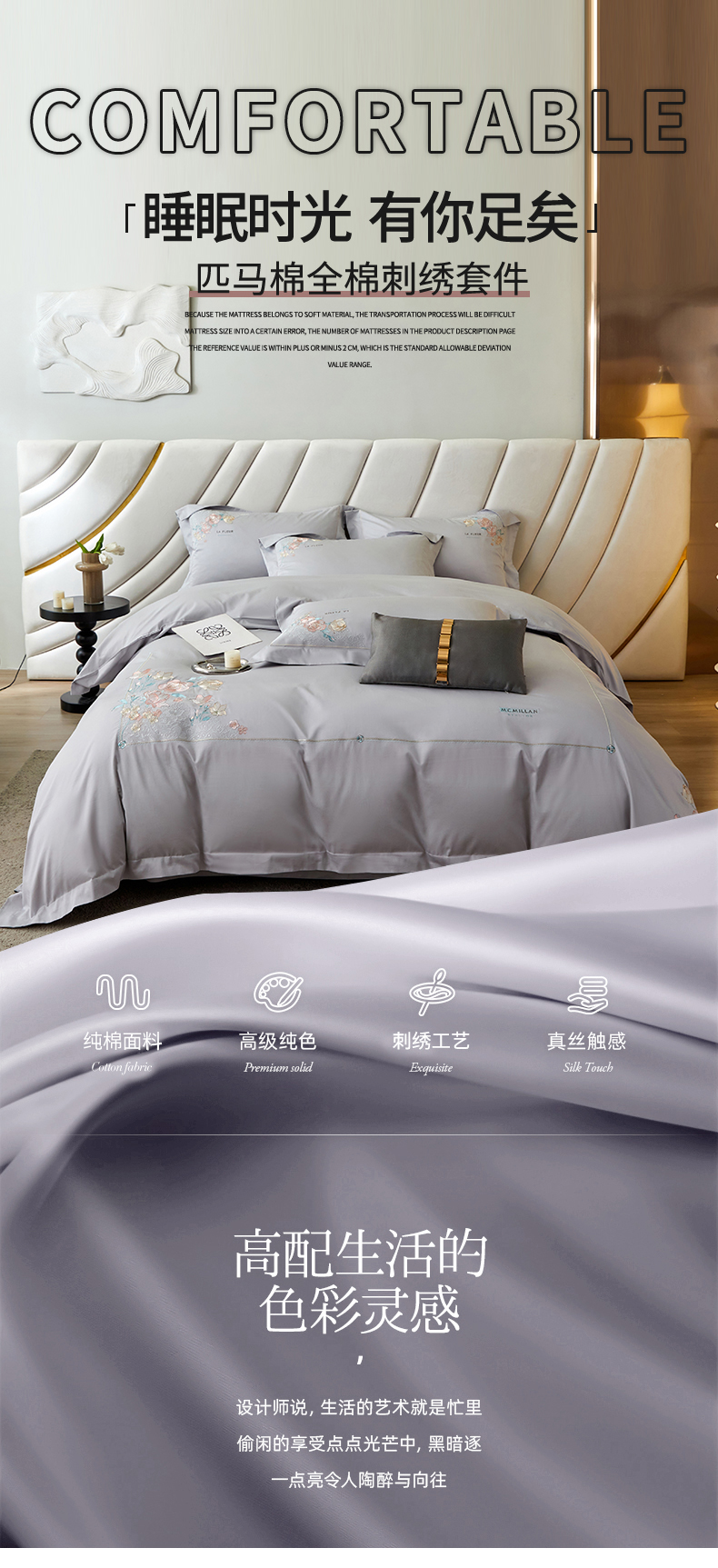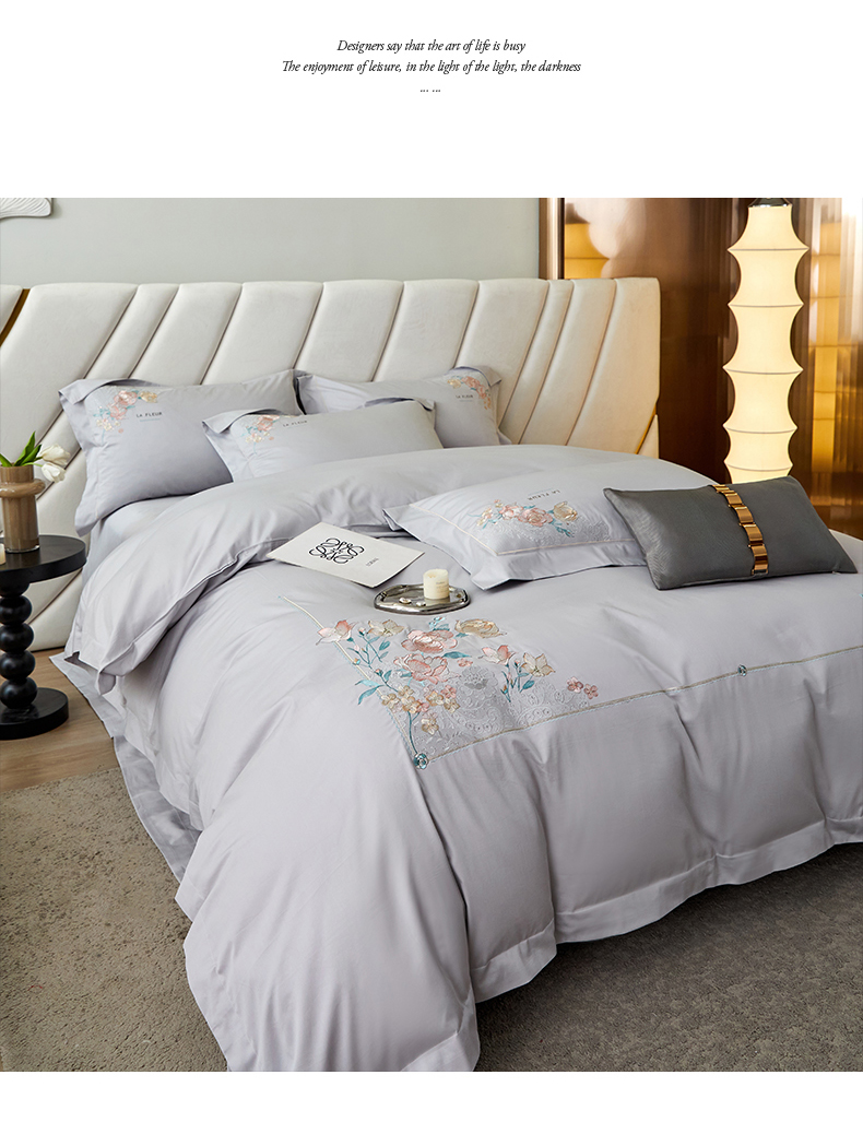 商品名称:宏羽纺2024新款高支高密全棉刺绣四件套-艾伦系列 艾伦 银月光