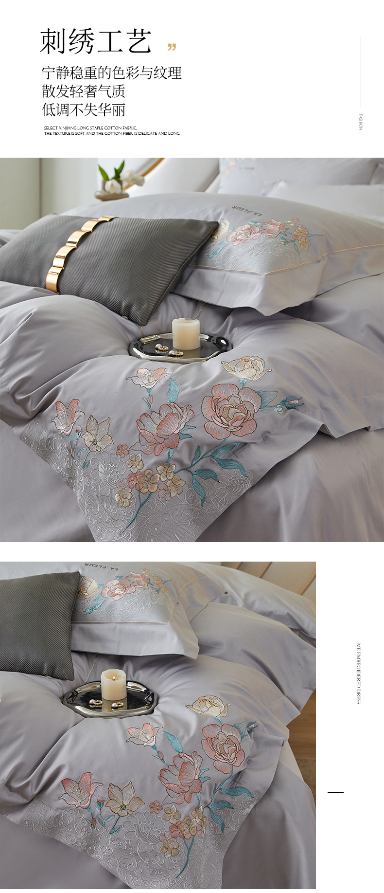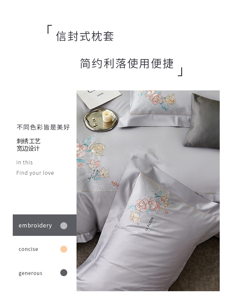 (总)宏羽纺家纺 2023新款高支高密全棉绣花工艺四件套--黛娜,黛娜-冰咖啡,黛娜-烈焰红,黛娜-凝脂玉,黛娜-月雾灰