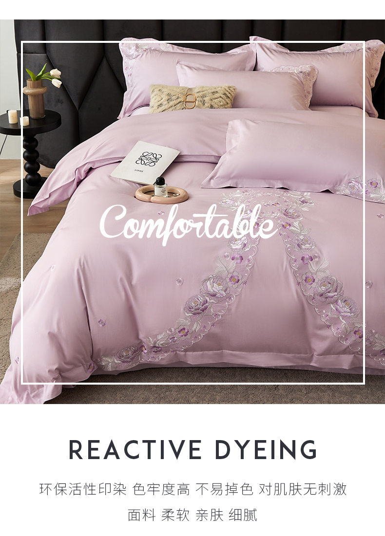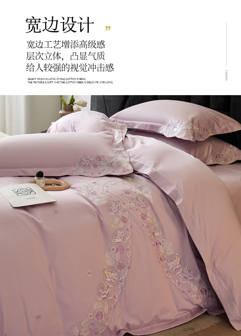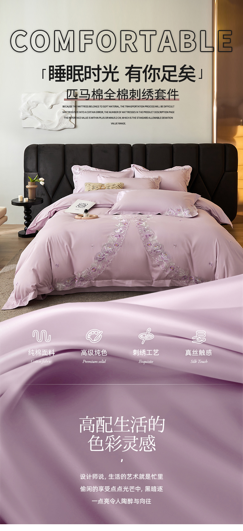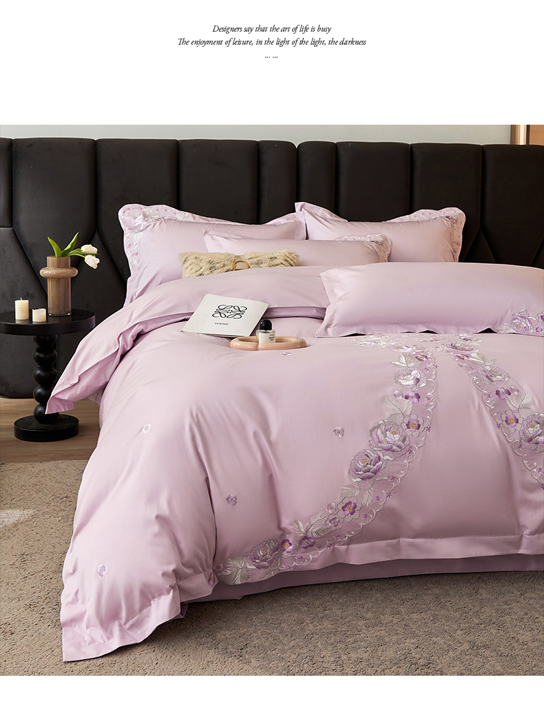 商品名称:宏羽纺2024新款高支高密全棉刺绣四件套 浪漫系列 浪漫 海葵紫