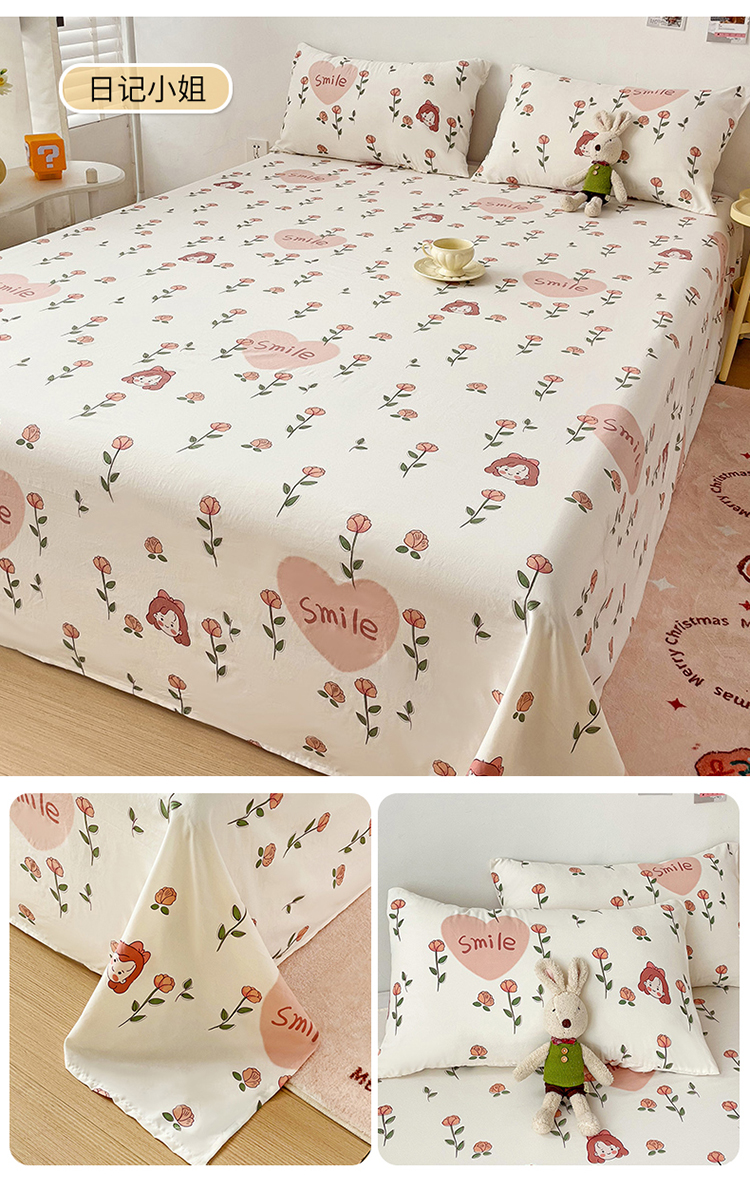 商品名称:纽缦家纺 2024水洗双层纱床单 日记小姐