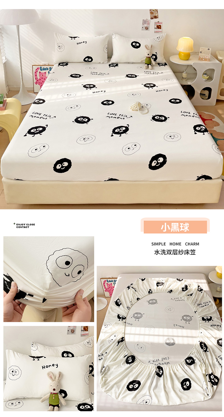 商品名称:纽缦家纺 2024水洗双层纱单床笠 小黑球