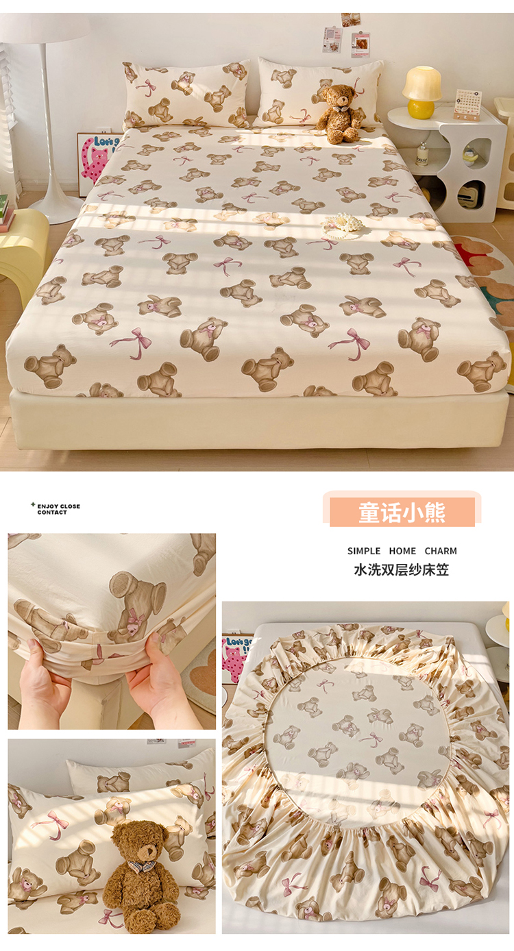 商品名称:纽缦家纺 2024水洗双层纱单床笠 童话小熊