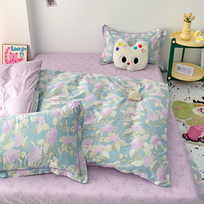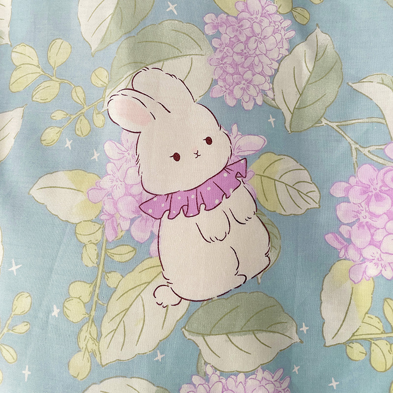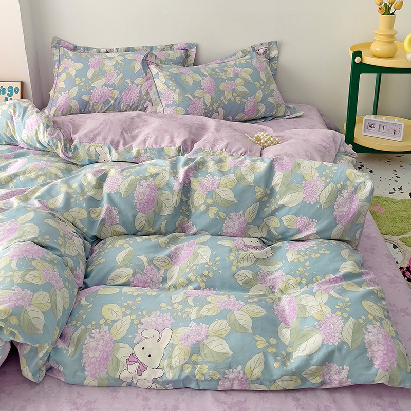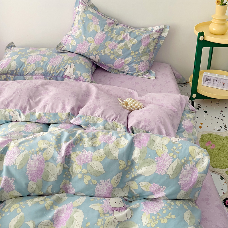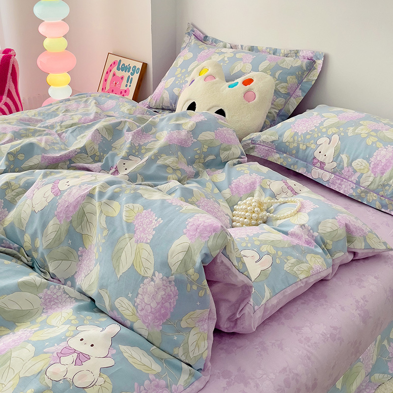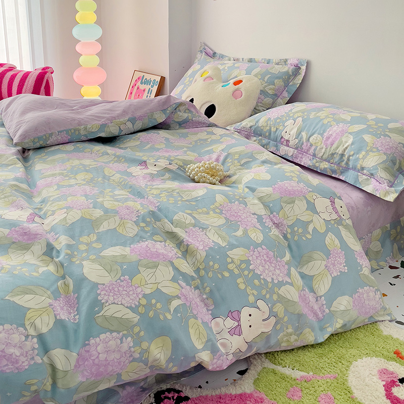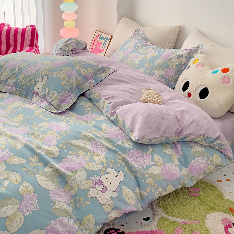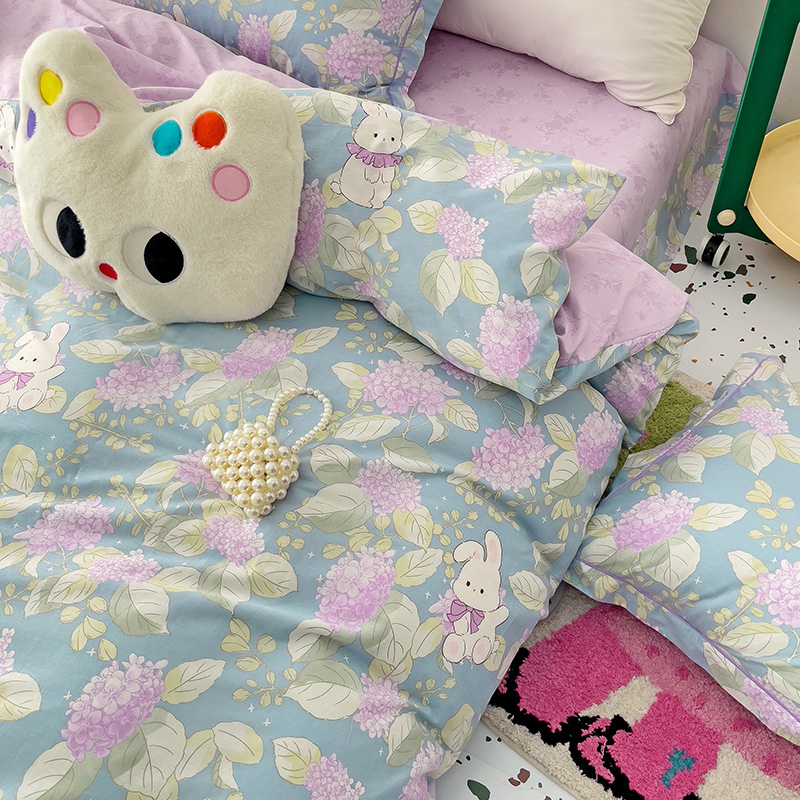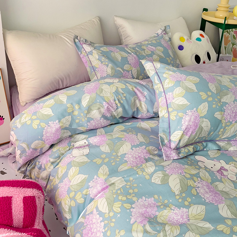 商品名称:云锦家居 2024新款13070纯棉印花吊边款一字绣四件套 绣球花兔