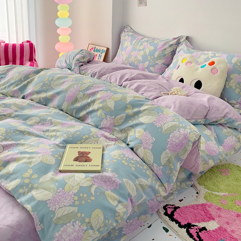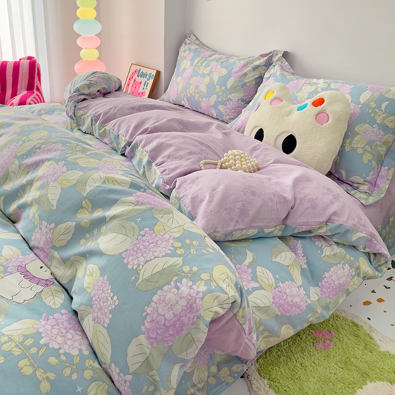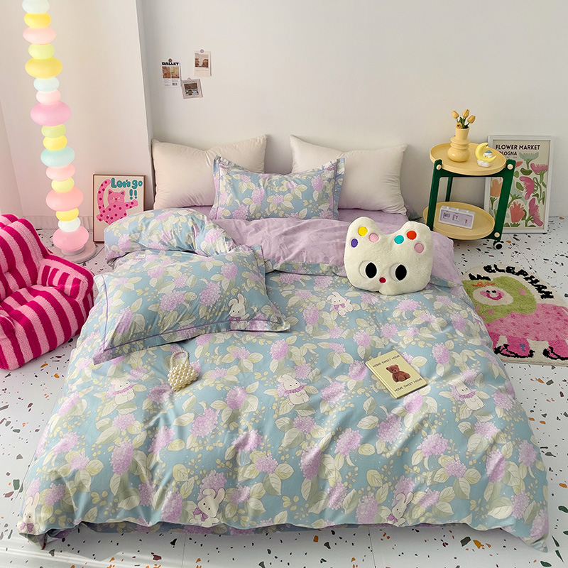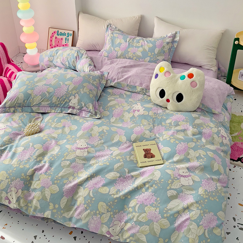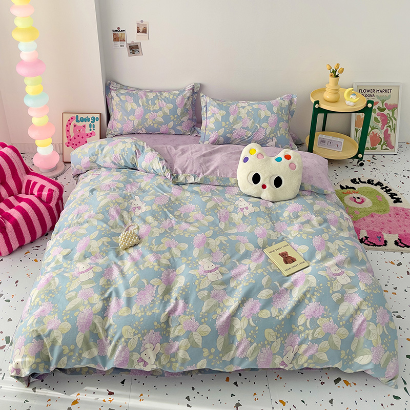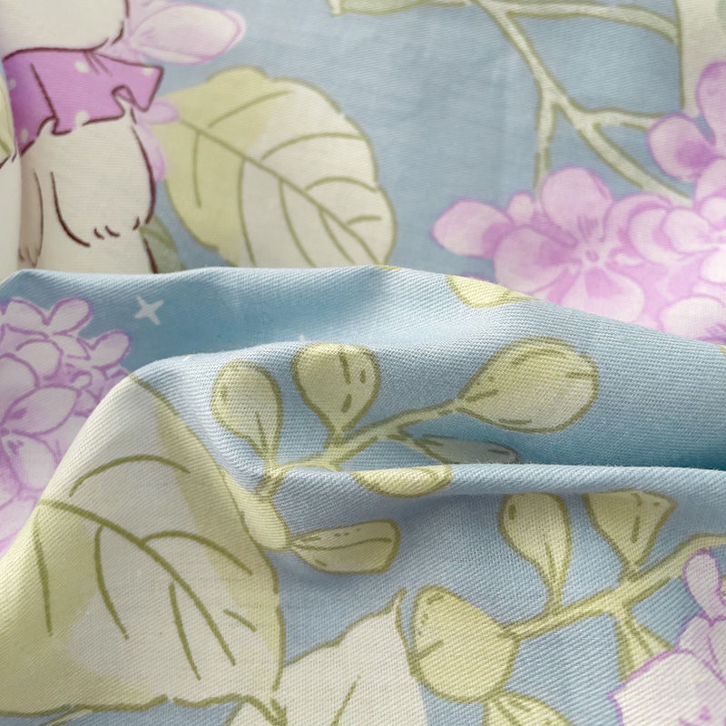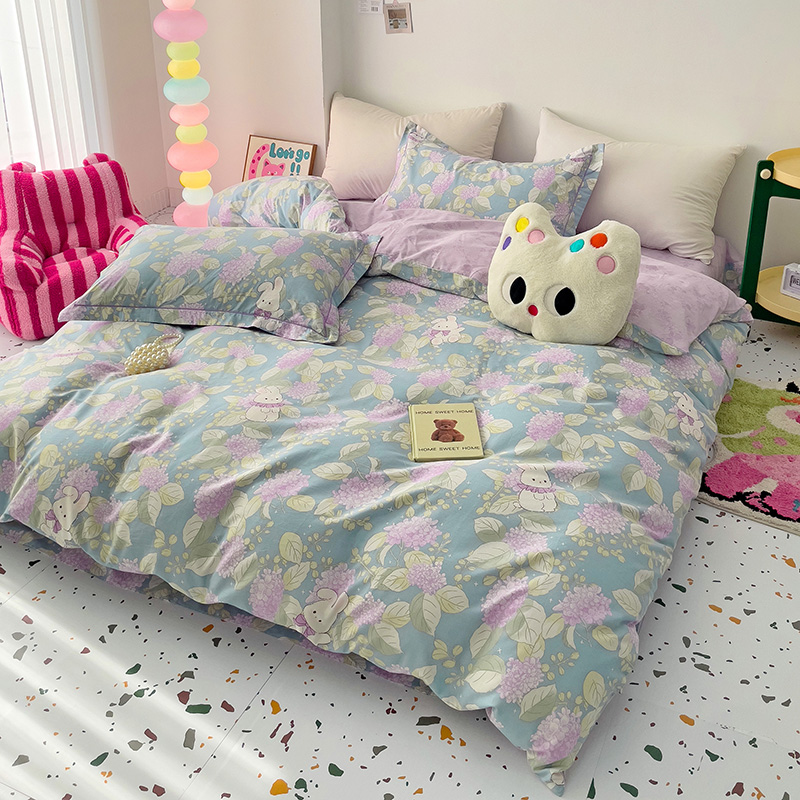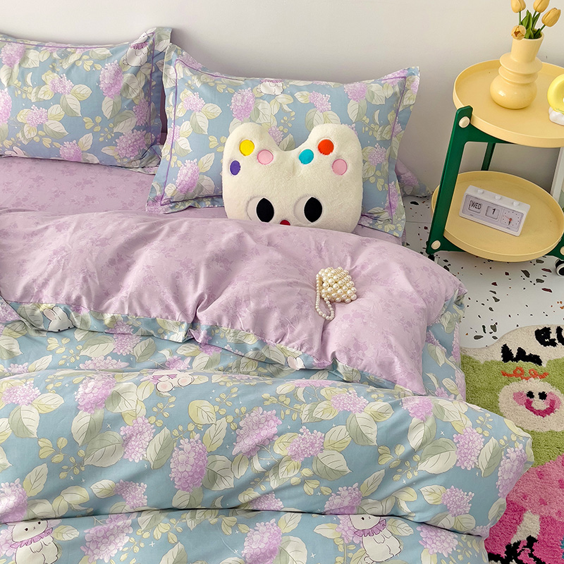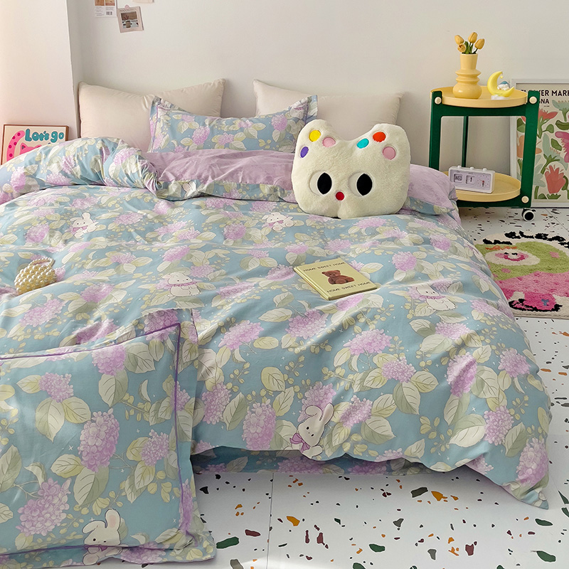 商品名称:云锦家居 2024新款13070纯棉印花吊边款一字绣四件套 绣球花兔