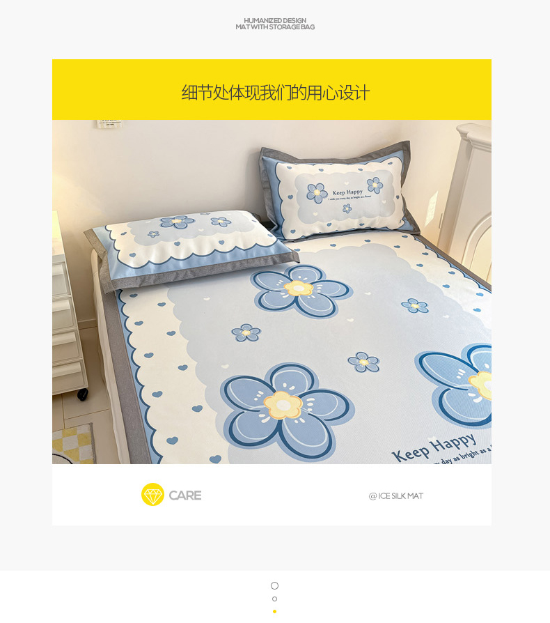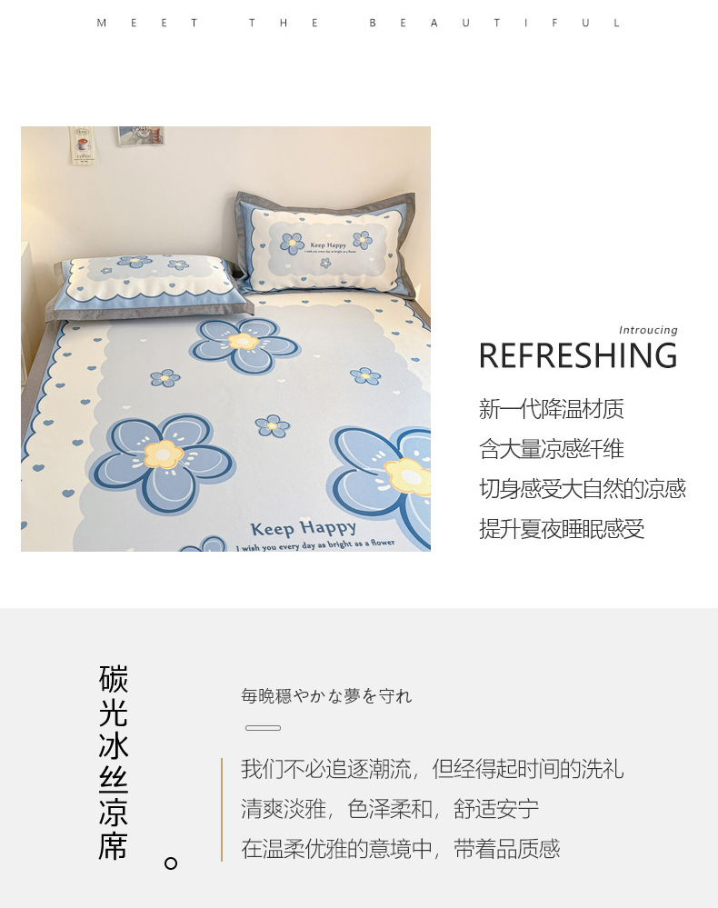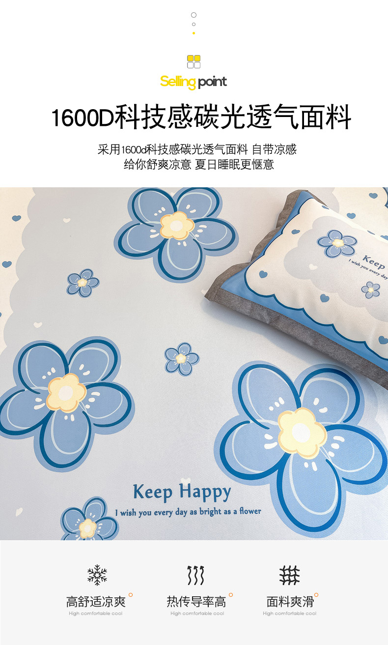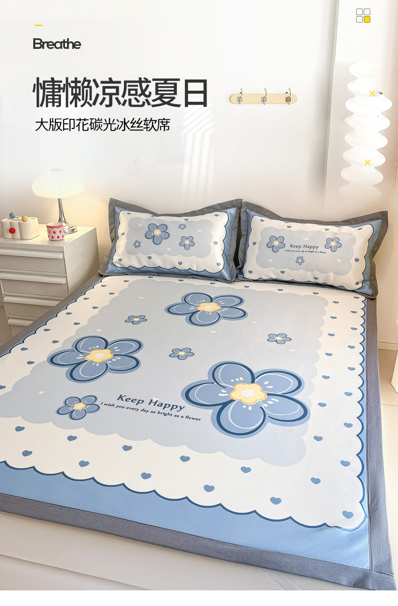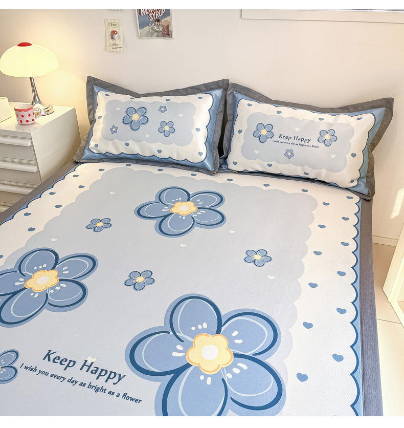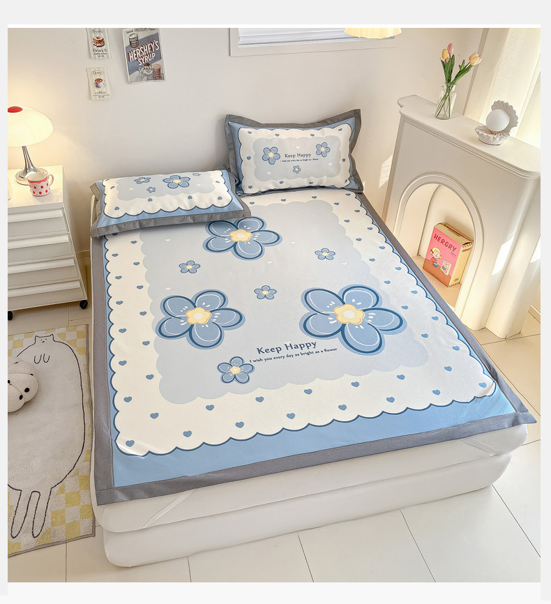 商品名称:柒月 2024新款大版数码印花1600D加厚碳光冰丝席 蓝色之恋