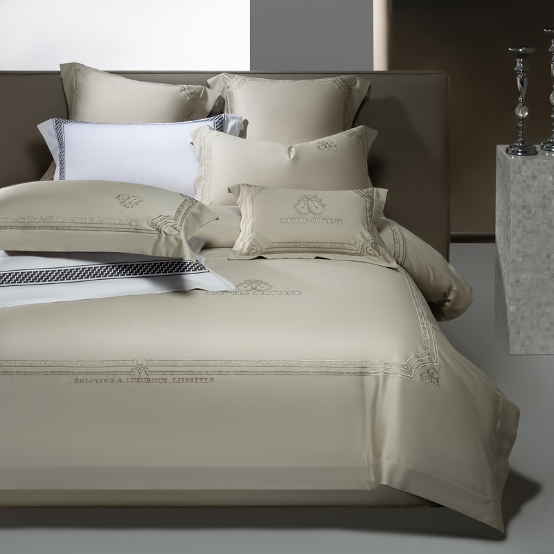 高大尚2025春夏新品长绒棉高端绣花四件套-法尔曼 法尔曼 卡其色