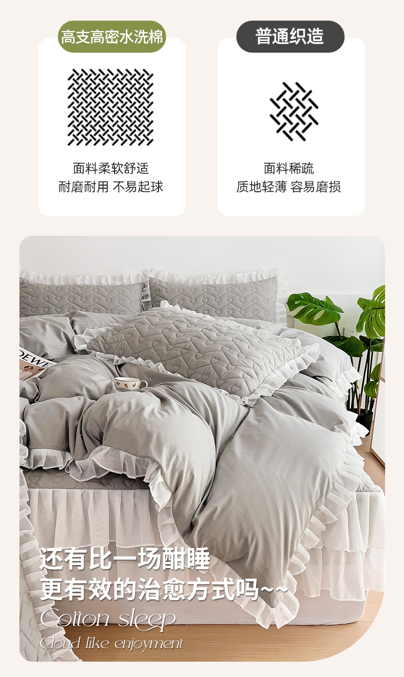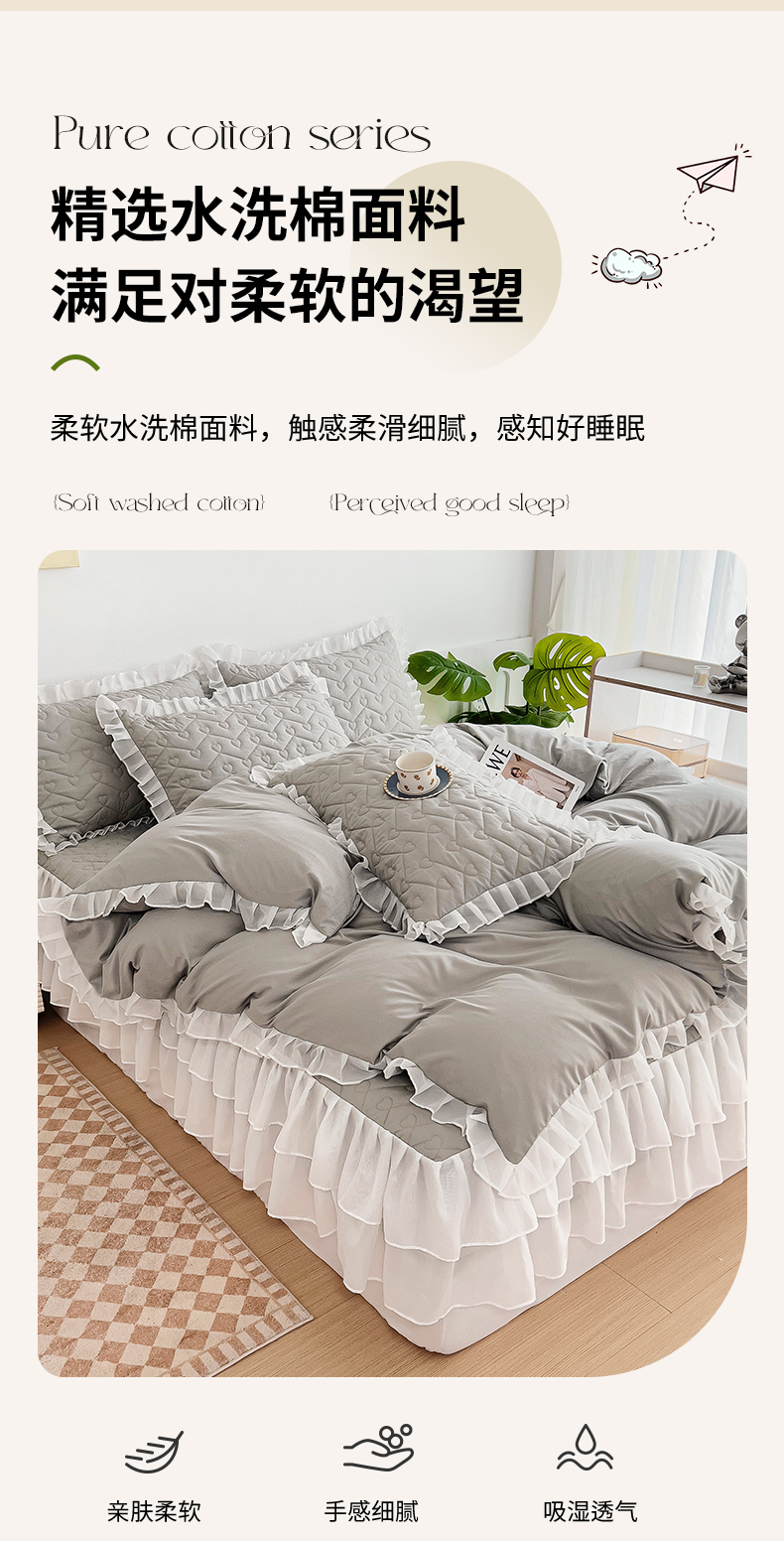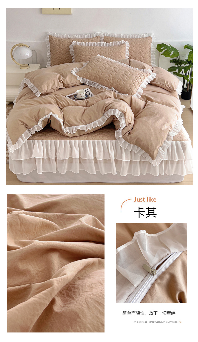 (总)屹成 2024新款水洗棉蕾丝四季款床笠床裙单品套件-床裙三件套,粉玉,豆沙,粉红,大红,橄榄绿,卡其,玫红,浅紫,水绿,天蓝,银灰