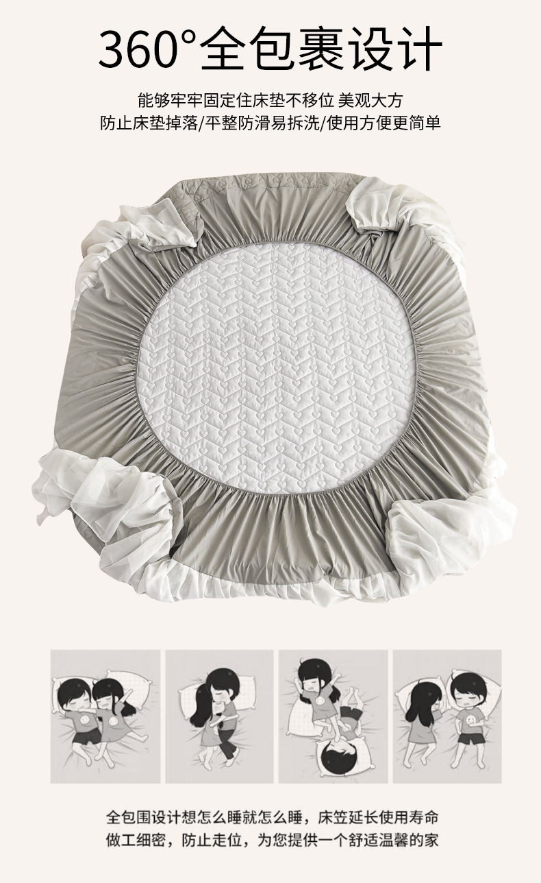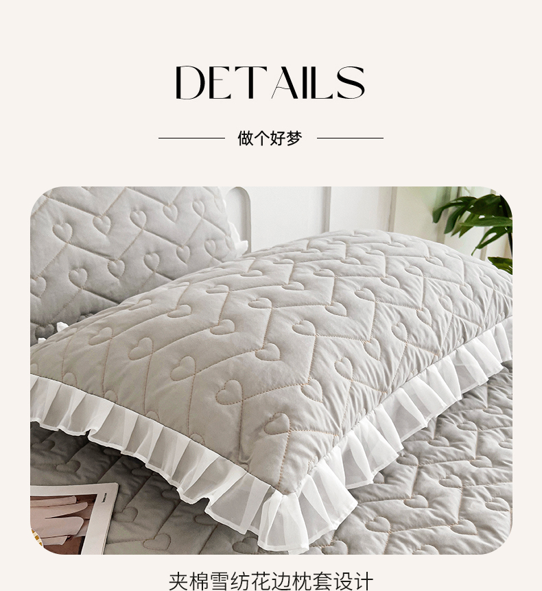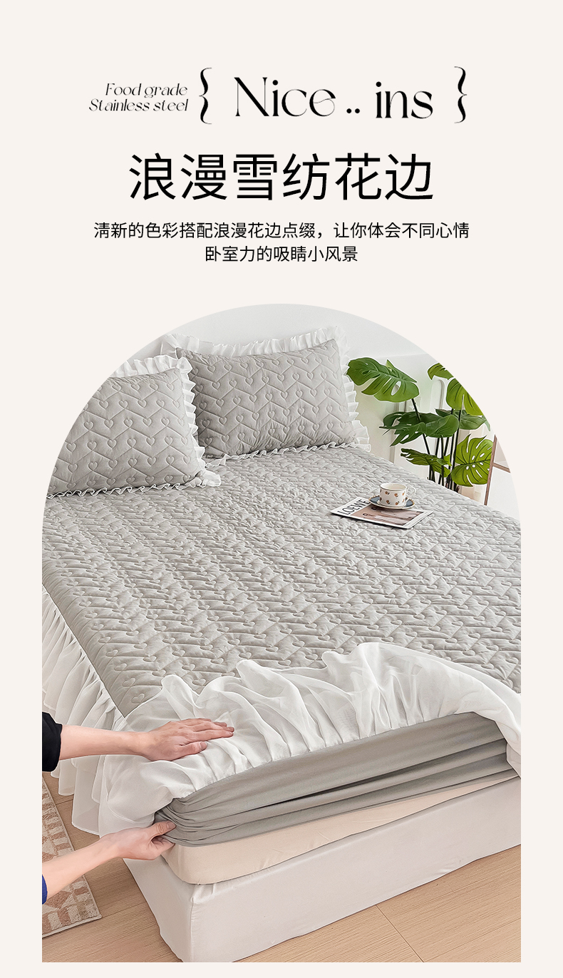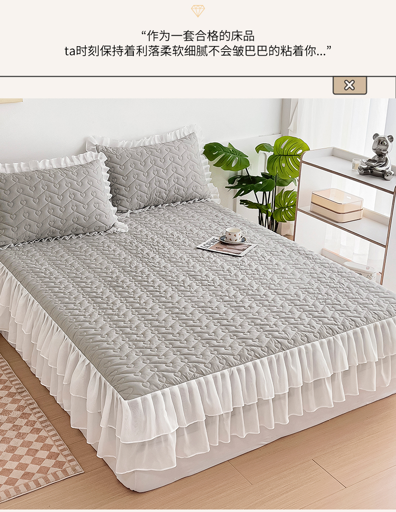 (总)屹成家纺2025新款水晶绒夹棉绗缝蕾丝床裙三件套(塞纳河畔)床裙单件起售价不低于105元,大红,豆沙,翡翠绿,粉玉,橄榄绿,蔚蓝,银灰