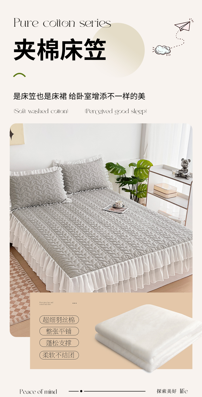 (总)屹成家纺 2024新款天竺棉夹棉床裙四件套,玳瑁紫,典雅驼,豆沙,格调蓝,经典灰,孔雀绿
