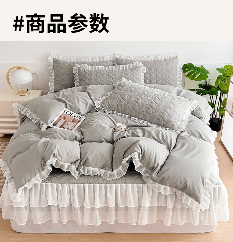 商品名称:屹成 2024新款水洗棉雪纺丽莎款床笠款四件套 银灰