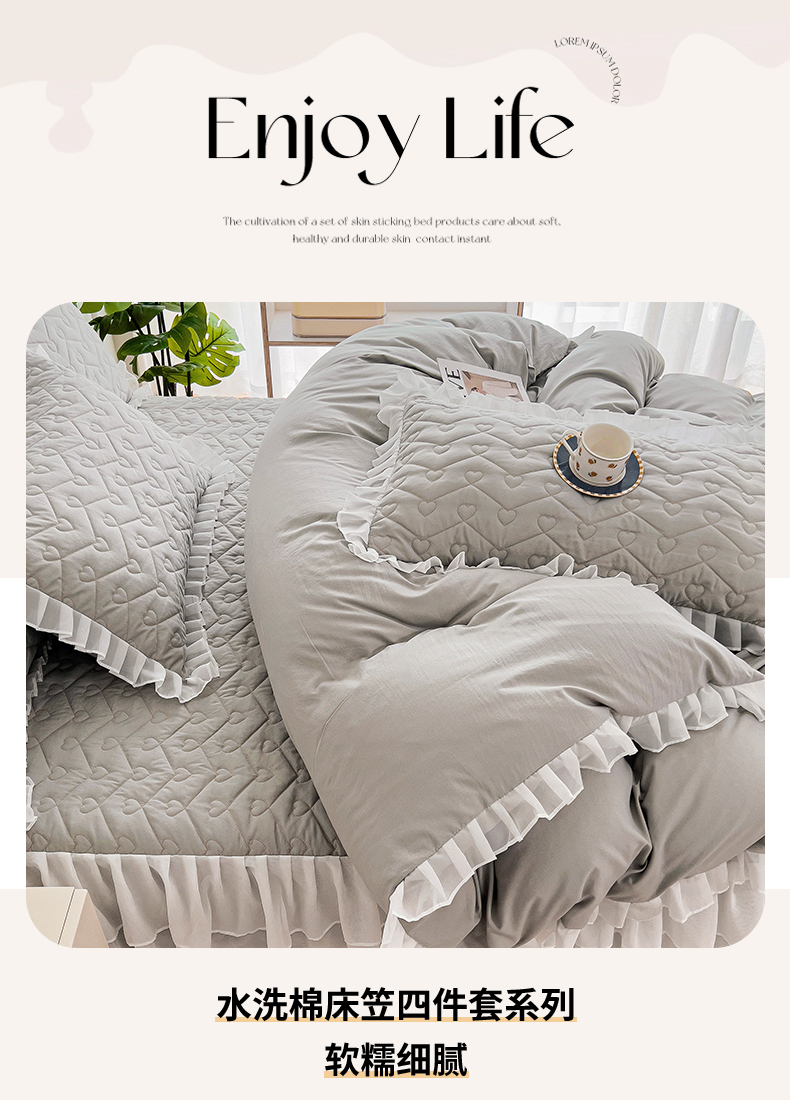 (总)屹成家纺 2025新款水洗棉床裙款四件套-倾城(四件套控价208元起),倾城-大红,倾城-豆沙,倾城-粉玉,倾城-橄榄绿,倾城-卡其,倾城-浅紫,倾城-银灰