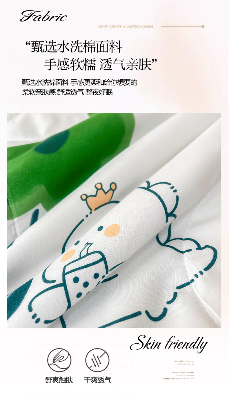 商品名称:倾慕家纺 新款A类小清新水洗棉小花边夏被系列 绿叶小恐龙