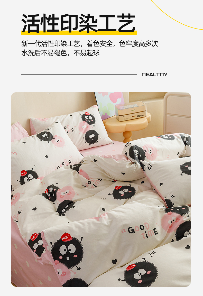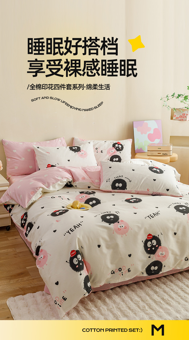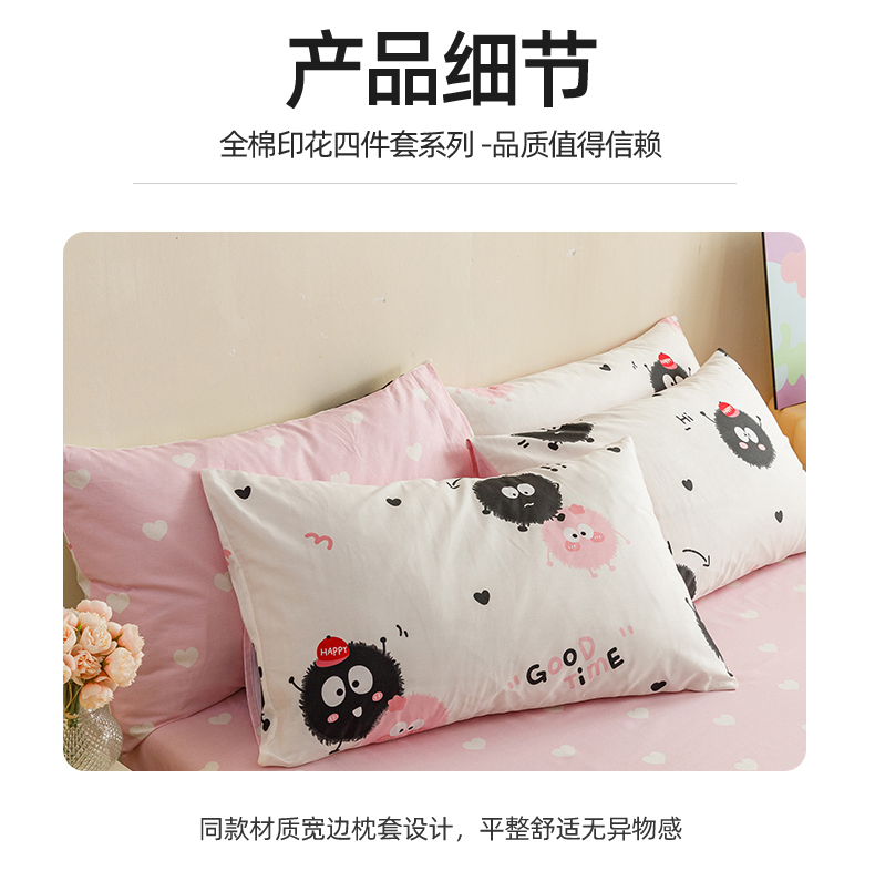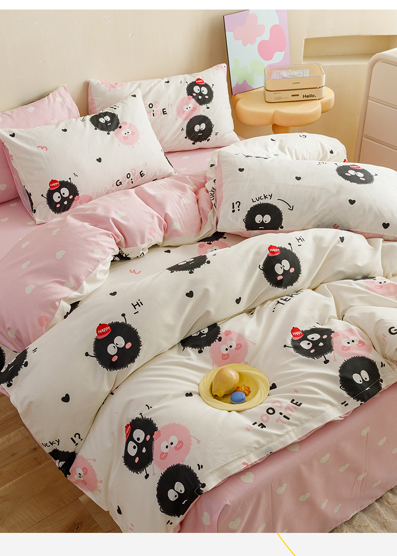 当前位置: 91家纺网 > 商品网购 > 床品套件 > 四件套 > 全棉普通四件套 > 红粉佳人家纺 2024新款纯棉卡通小清新四件套及单品 开心煤球-1