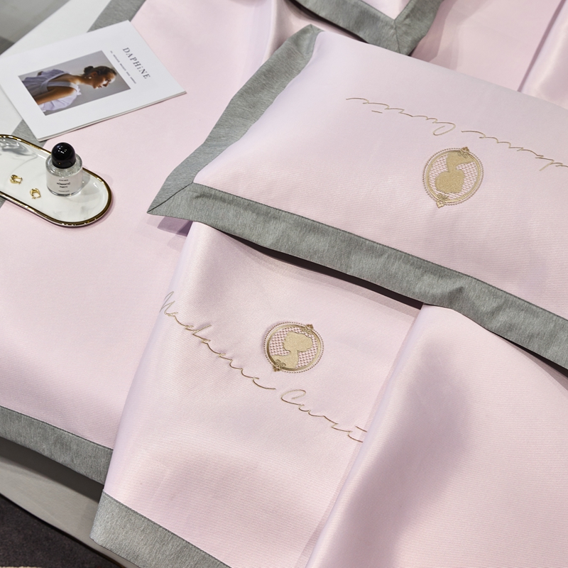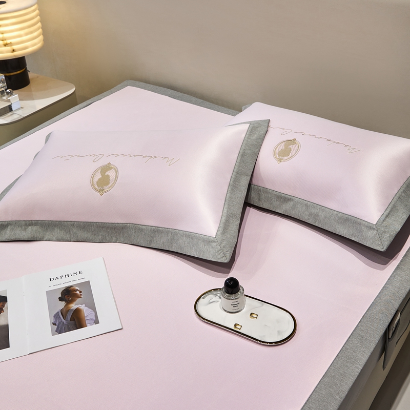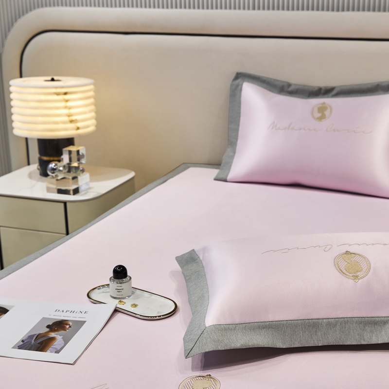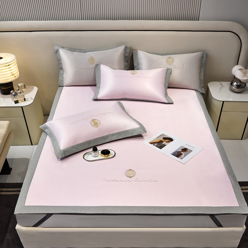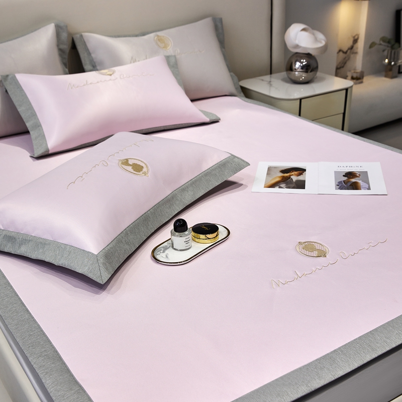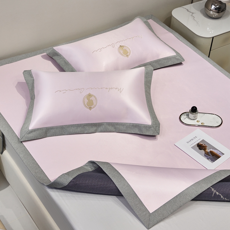 商品名称:三味舒屋 2025新款凉感印花梦莎刺绣冰丝凉席-风格一 梦莎粉-床席款