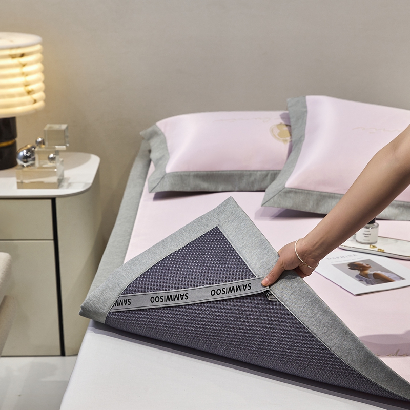 三味舒屋 2025新款凉感印花梦莎刺绣冰丝凉席-风格一 梦莎粉-床席款