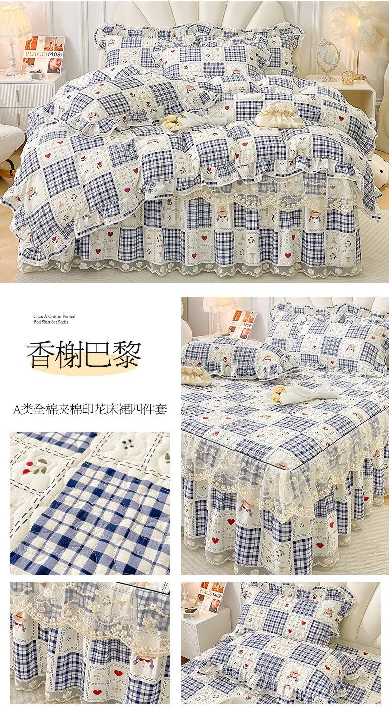 宜凡家纺 2024新款全棉夹棉印花床裙系列四件套 诗悦赞语