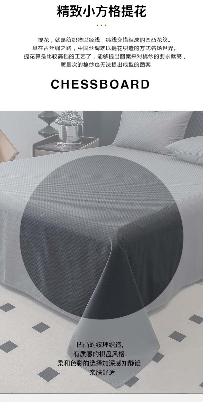 商品名称:金鑫汇 2024新款提花小方格全棉套件单品系列-单床单 深灰