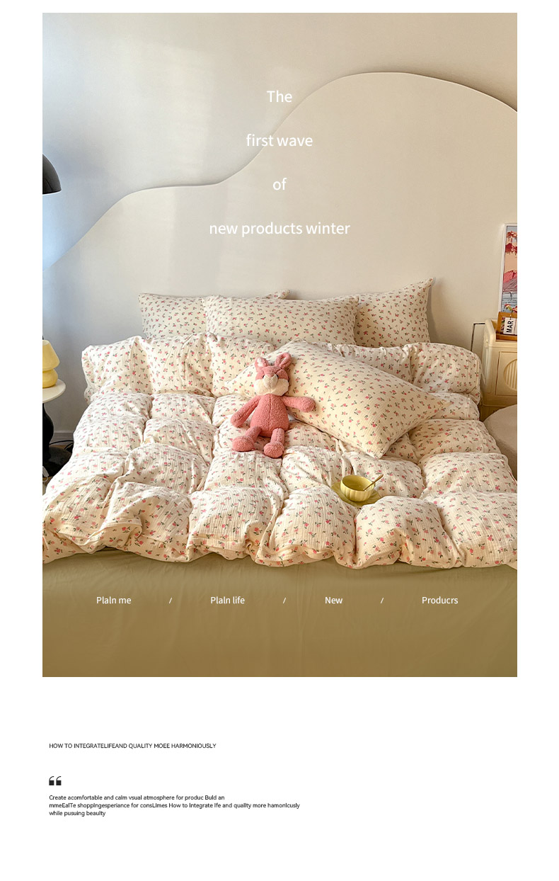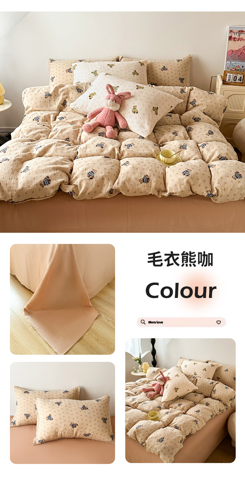商品名称:千朵 2024新款全棉双层纱四件套 毛衣熊咖