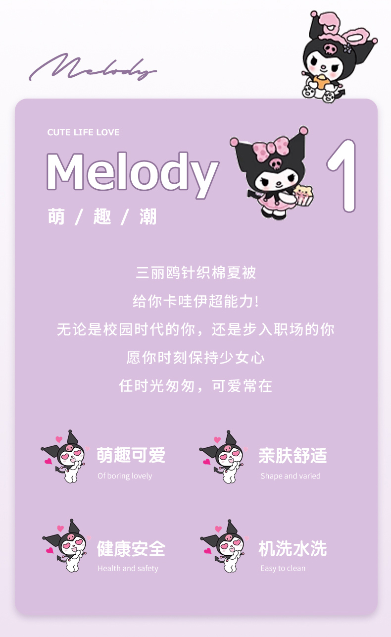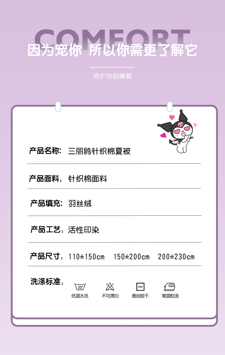 商品名称:DS-2025新款儿童卡通三丽鸥正版授权A类针织棉夏被系列 樱桃库洛米