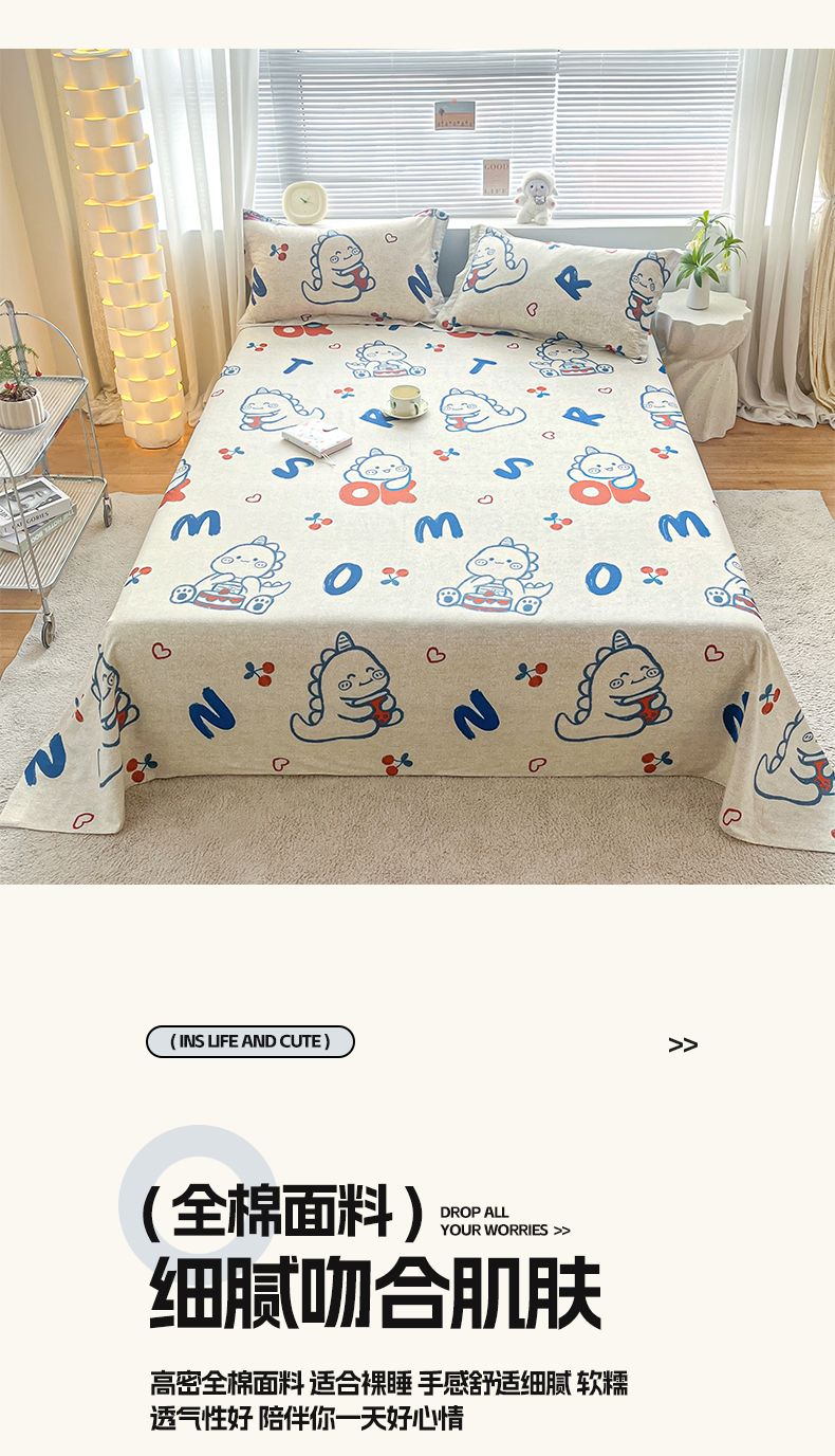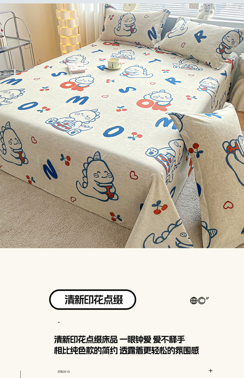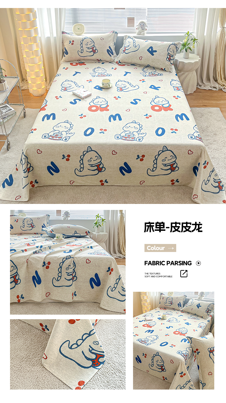 • 91家纺网 家纺一手货源 找家纺 涵宸家纺 2024新款全棉小清新印花单品套件--单床单 床单-皮皮龙