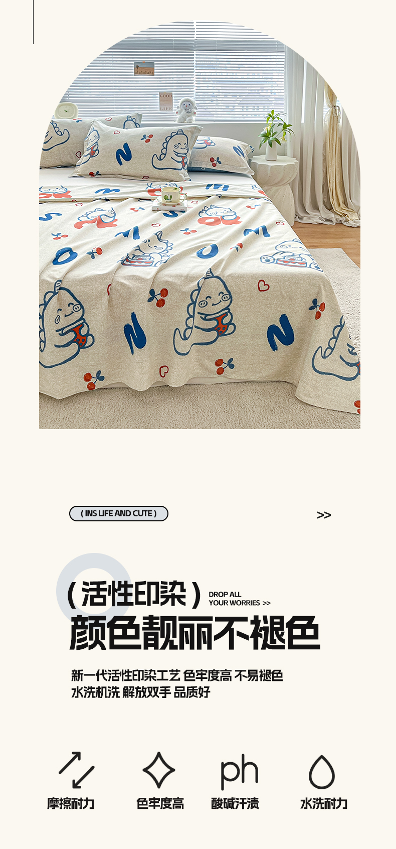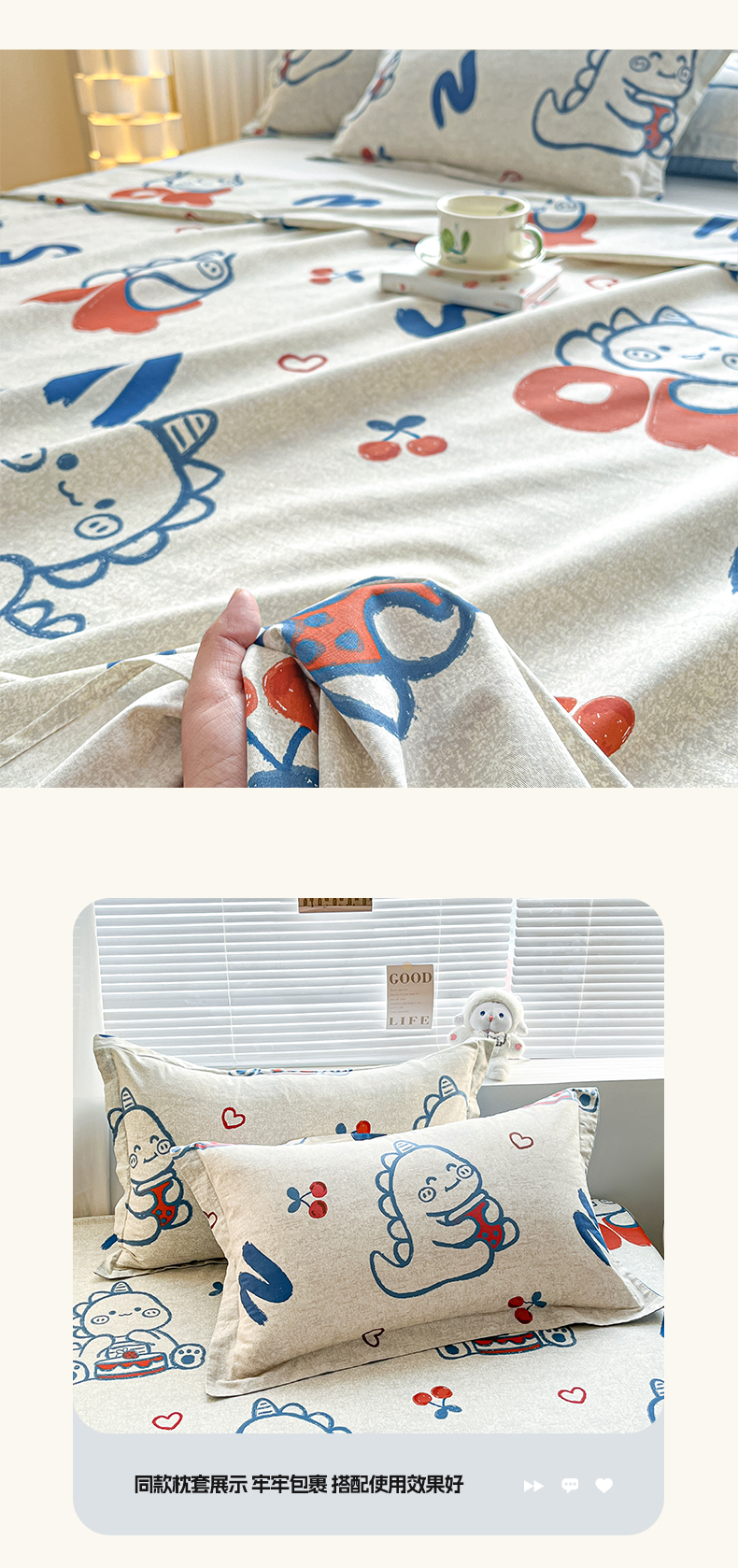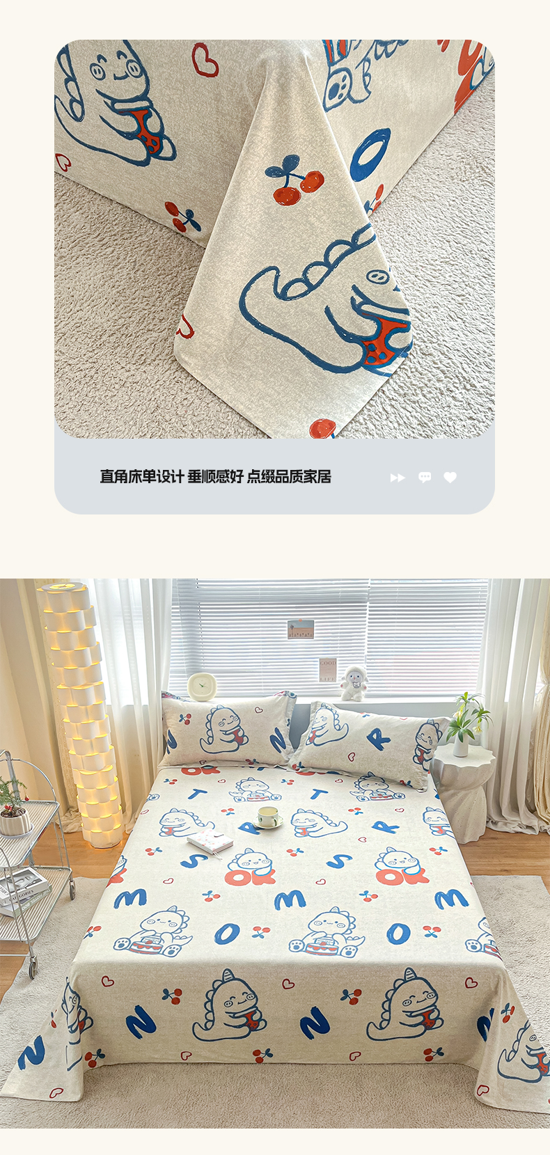 • 91家纺网 家纺一手货源 找家纺 涵宸家纺 2024新款全棉小清新印花单品套件--单床单 床单-皮皮龙