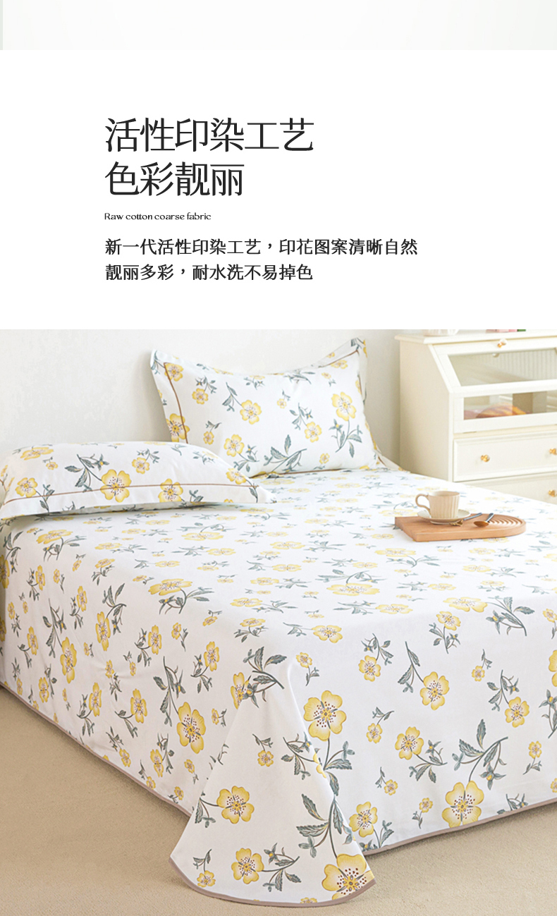 商品名称:金泰莱 2025新款原棉全棉老粗布凉席三件套全棉床单纯棉床单软凉席 春暖花开-黄