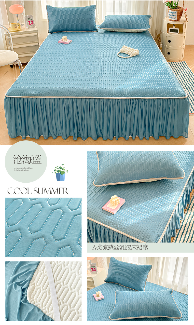 商品名称:伊人坊 2024新款A类凉感丝乳胶凉席床裙款床席 沧海蓝
