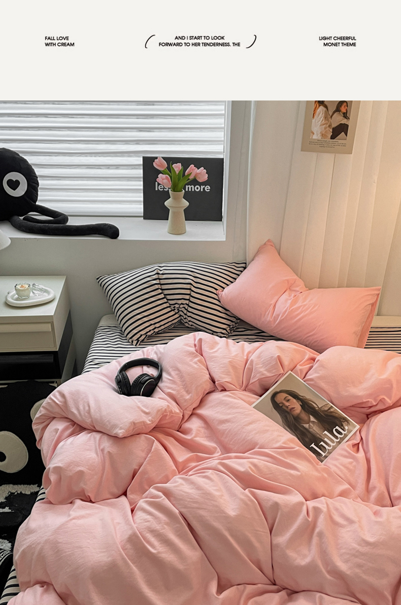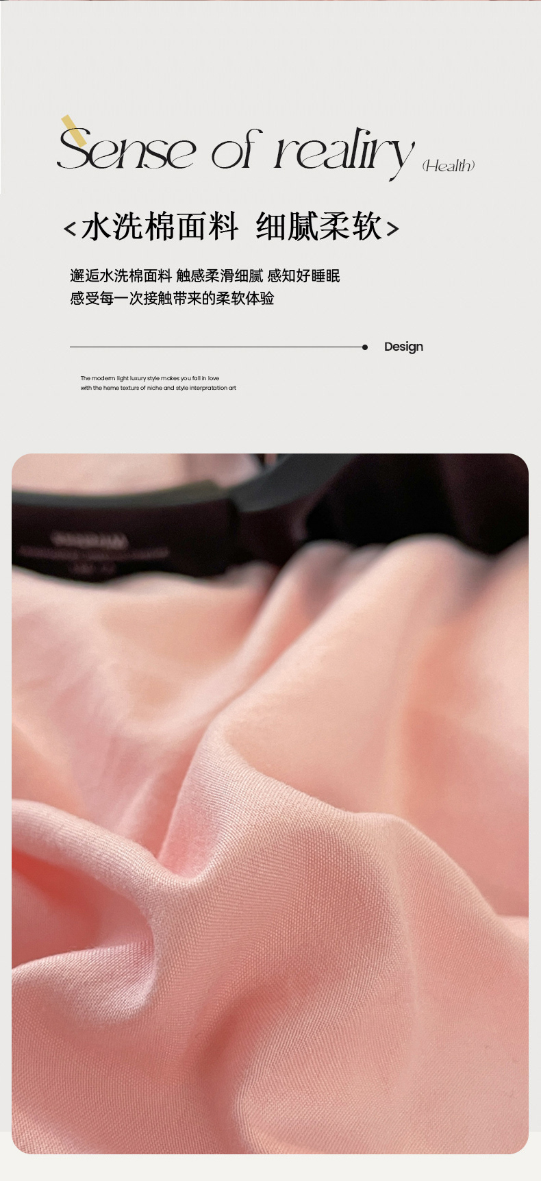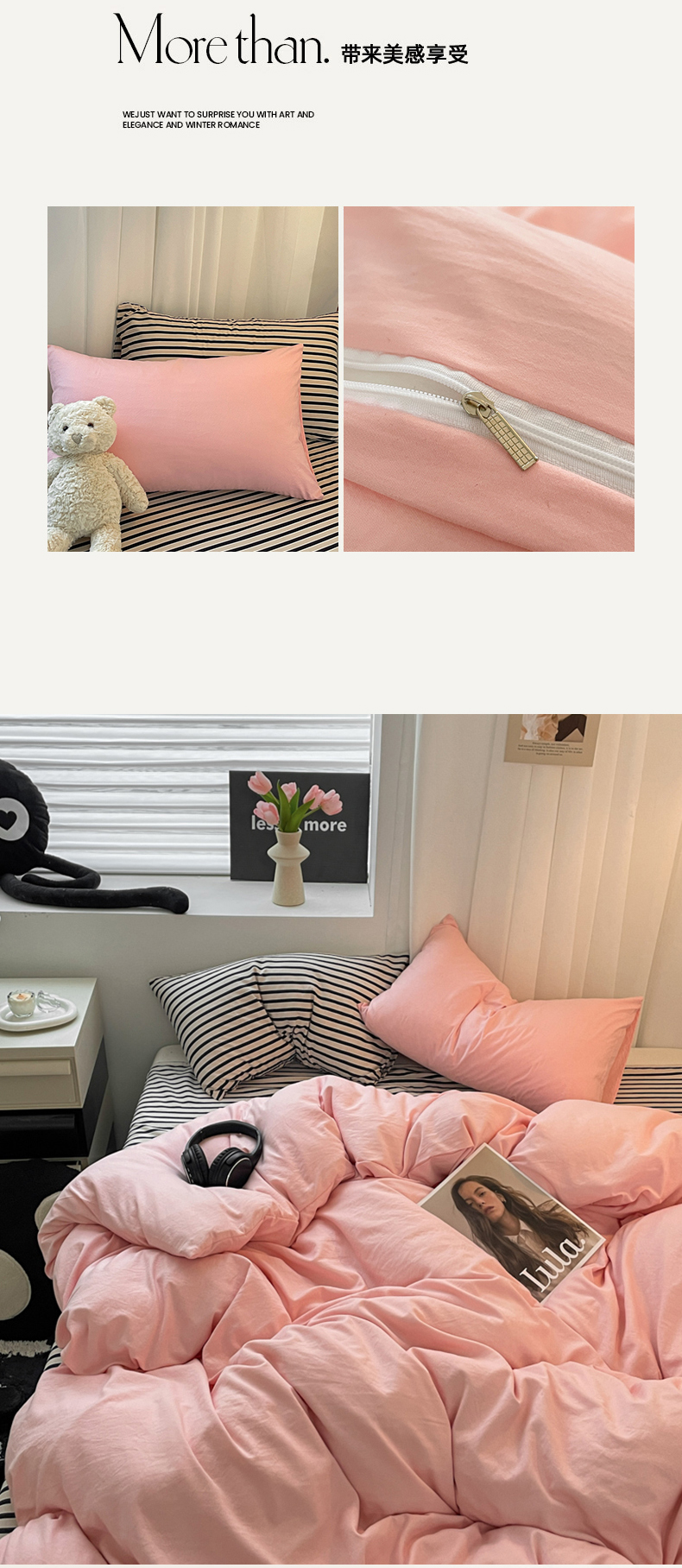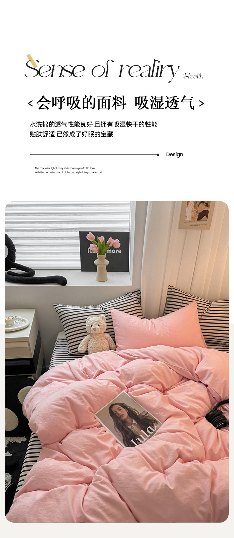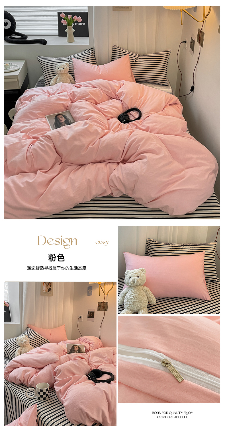 当前位置: 91家纺网 > 商品网购 > 床品套件 > 四件套 > 水洗棉四件套 > 耀达家居 2024新款ins 纯色双拼条纹水洗棉四件套 奶油粉