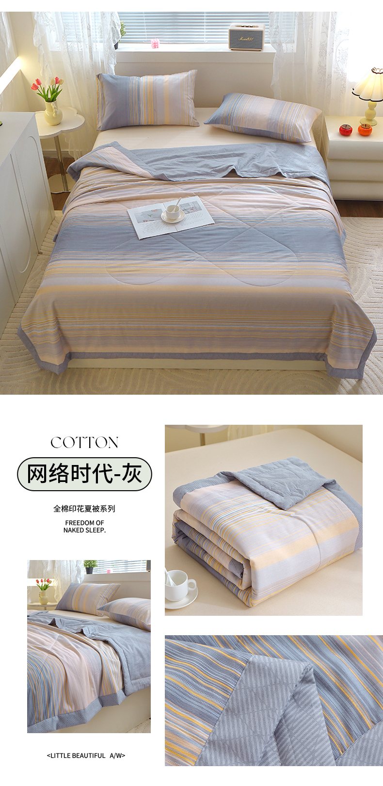 商品名称:金柚子2024新款全棉印花夏凉被 网络时代-灰