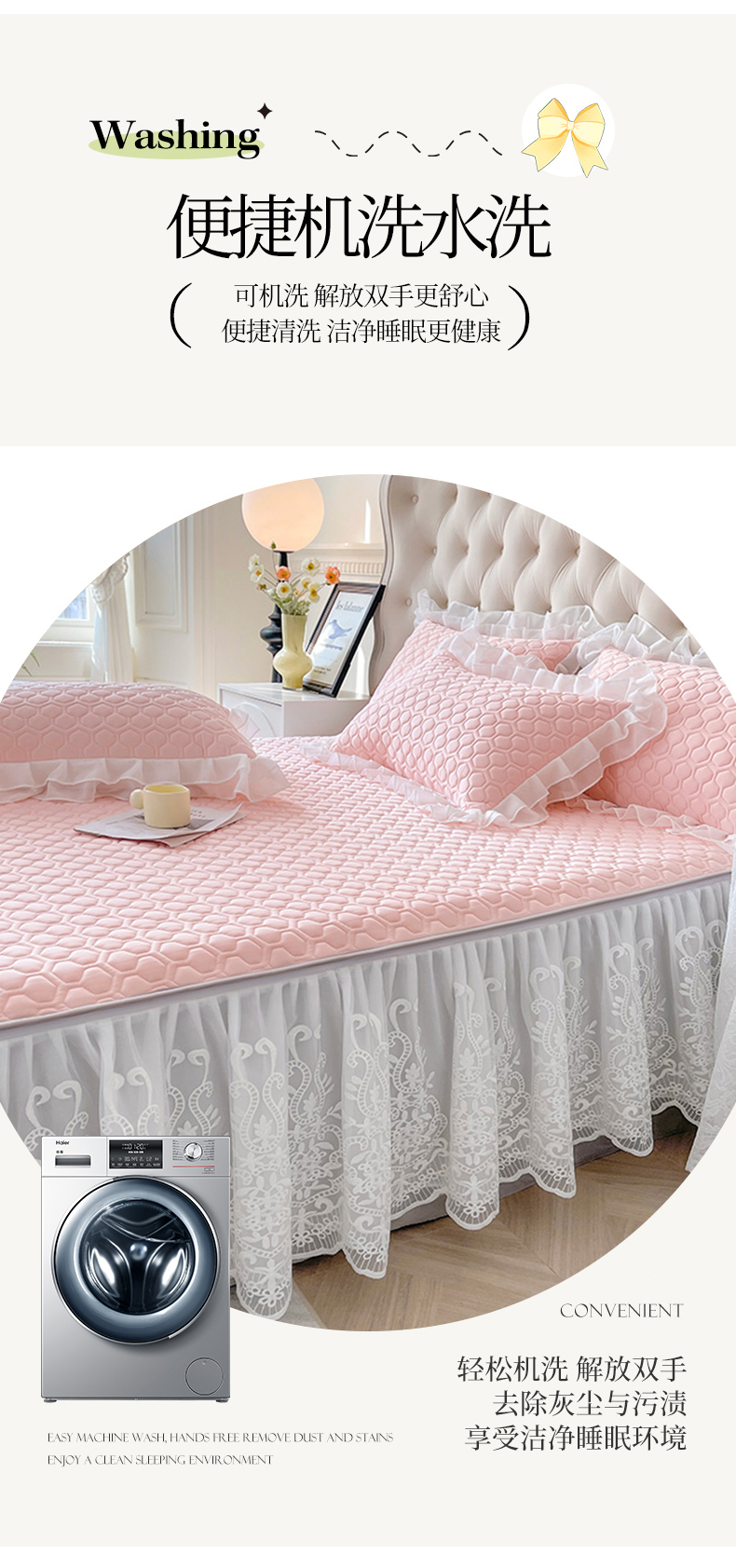 (总)虹星家纺 2024新款A类水洗棉四季款床裙系列套件-单床裙,湖水绿,抹茶绿,时尚灰,天空蓝,香妃玉,香蕉黄,香芋紫,樱花粉,云朵白