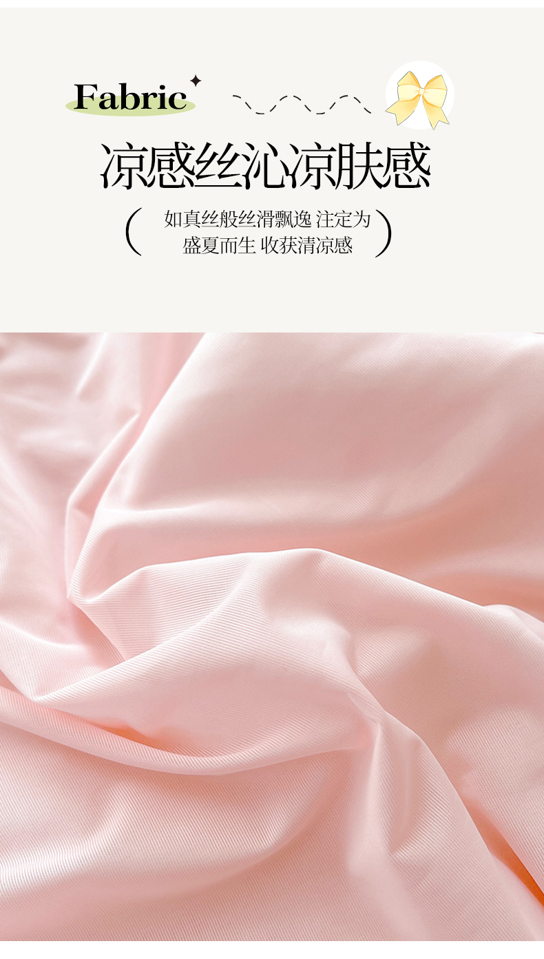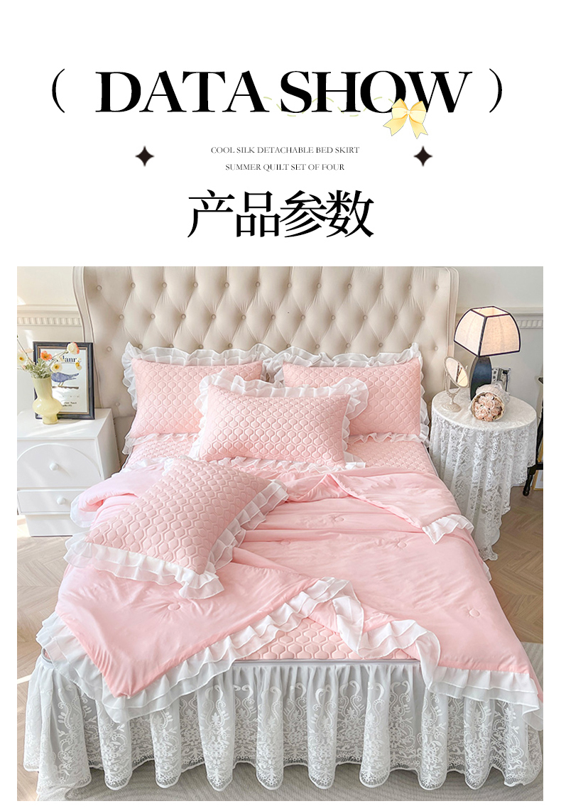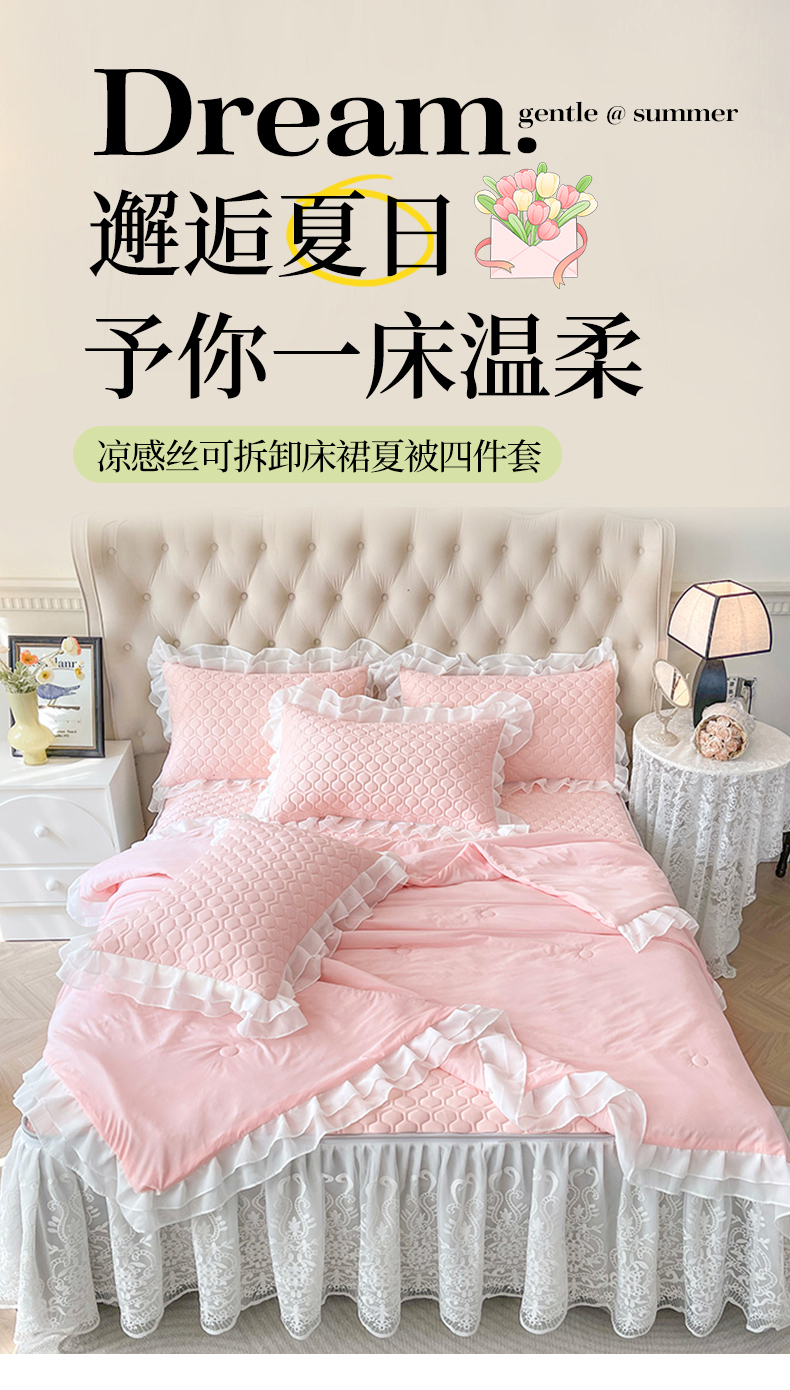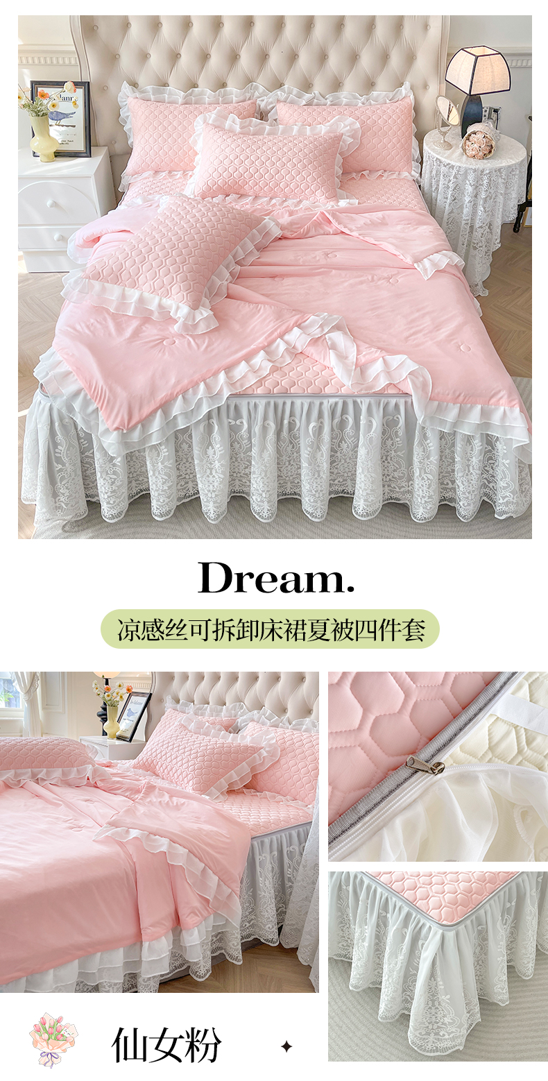 商品名称:虹星家纺 2024新款凉感丝印花可拆床裙套件-夏被凉席四件套 仙女粉
