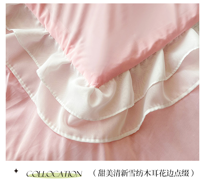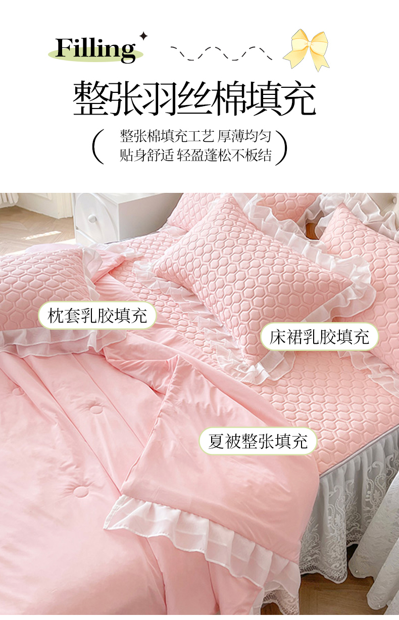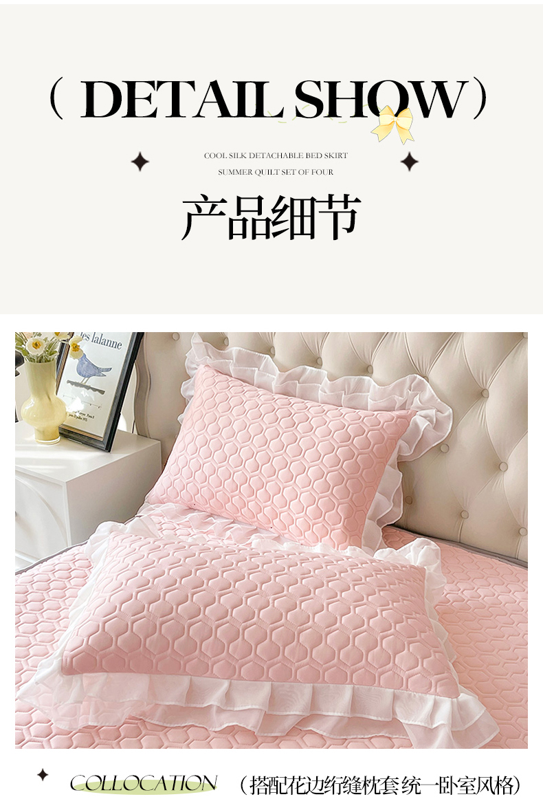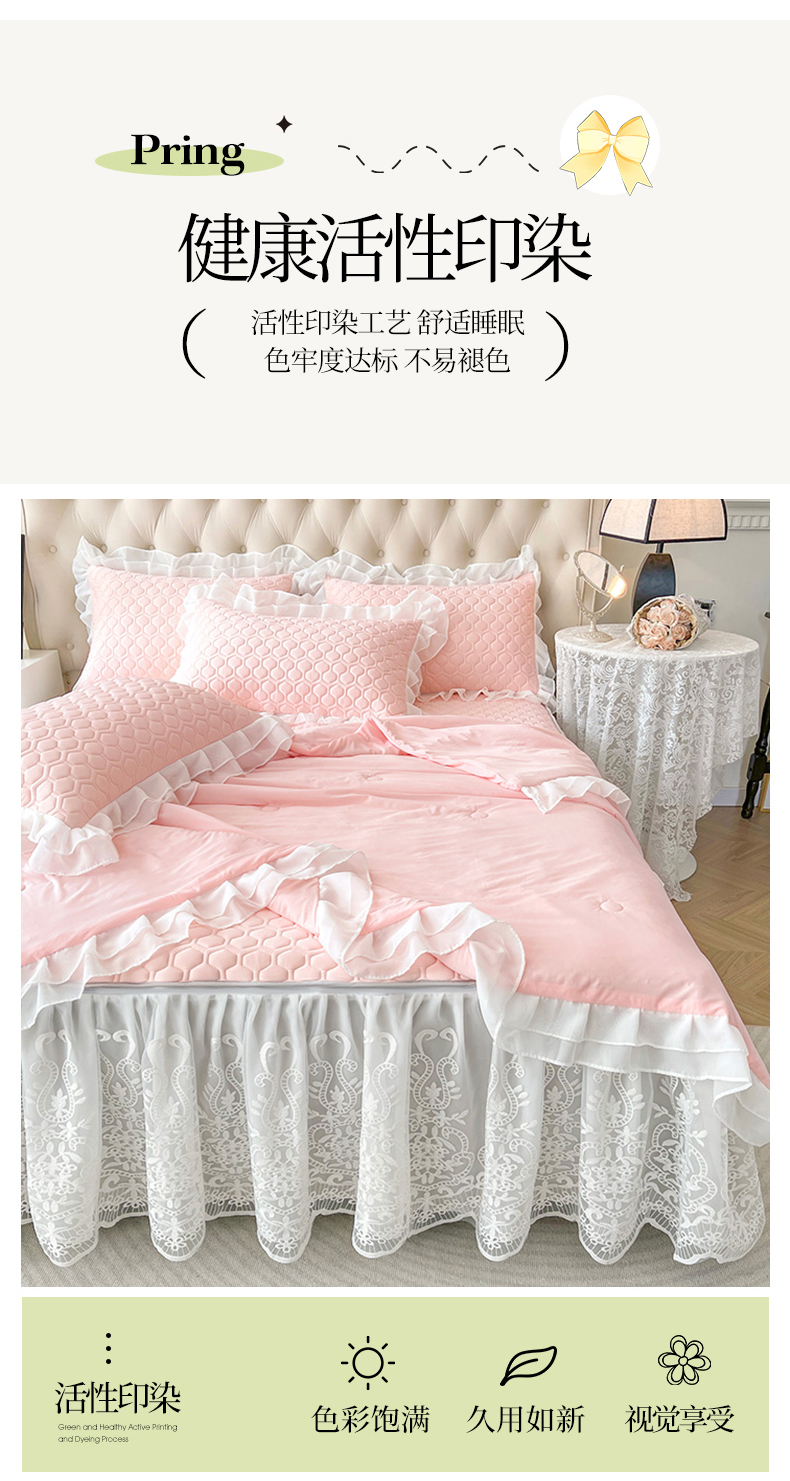 商品名称:虹星家纺 2024新款凉感丝印花可拆床裙套件-夏被凉席四件套 仙女粉