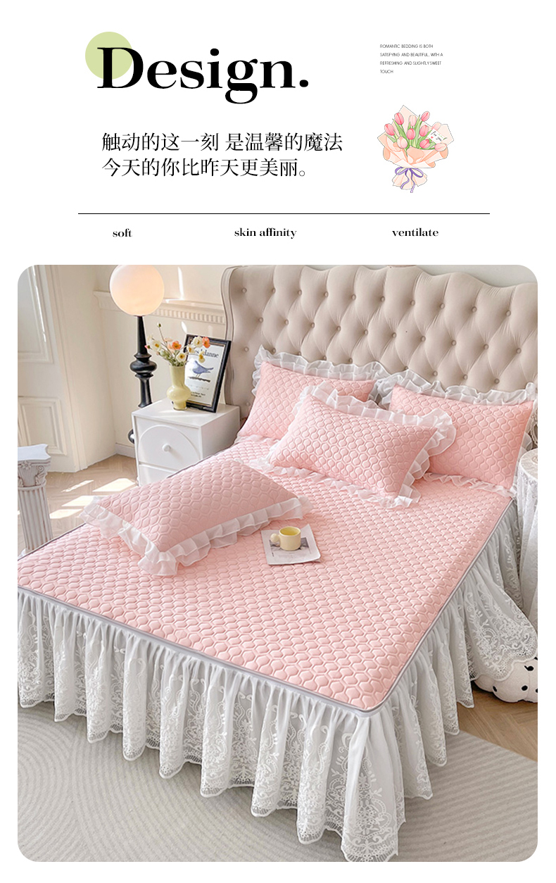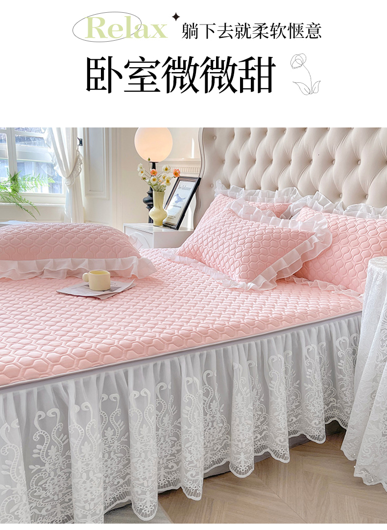 (总)虹星家纺 2025新款A类冰感凉豆豆床裙席三件套-素夏,素夏-抹茶绿,素夏-蜜桃粉,素夏-青果绿,素夏-天空蓝,素夏-月光灰