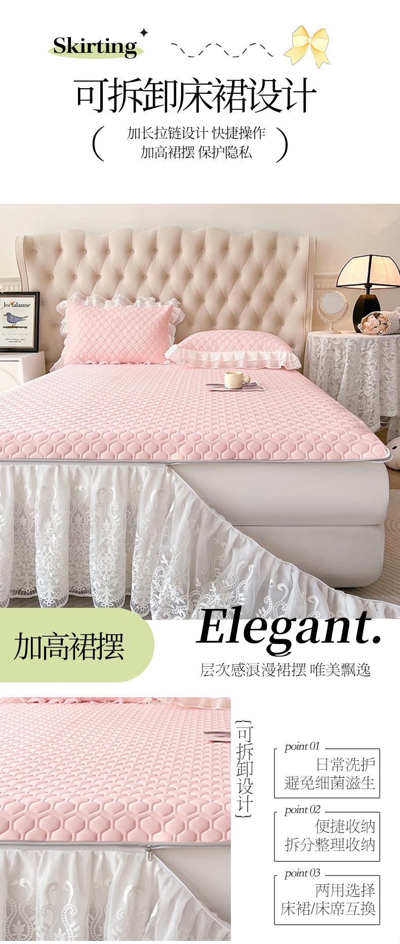(总)虹星家纺 2024新款A类冰感凉豆豆可拆卸床裙席三件套,静谧灰,宝石蓝,冰川蓝,梦幻粉,青果绿,珍珠灰