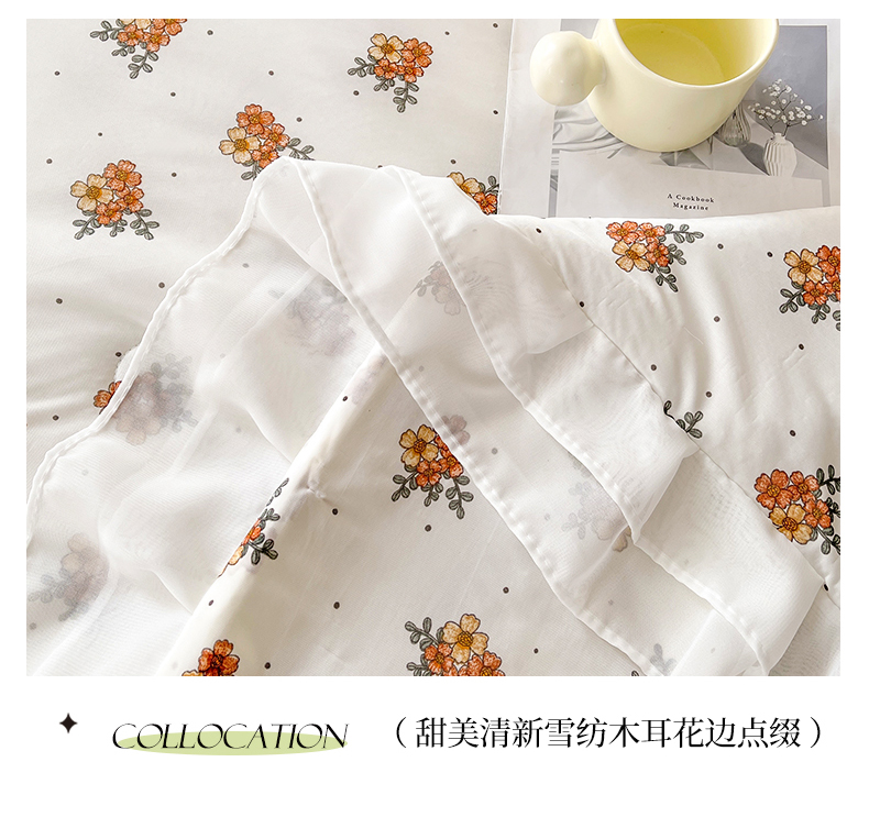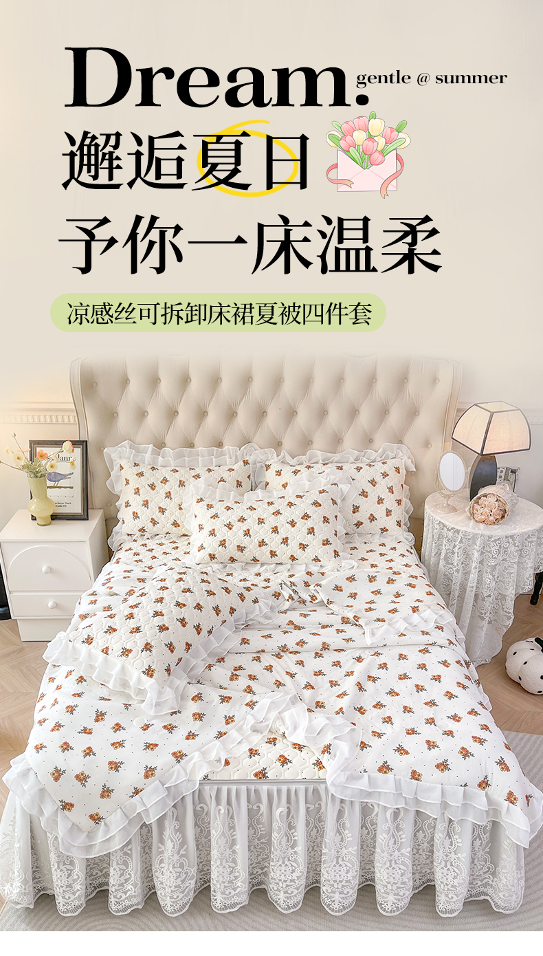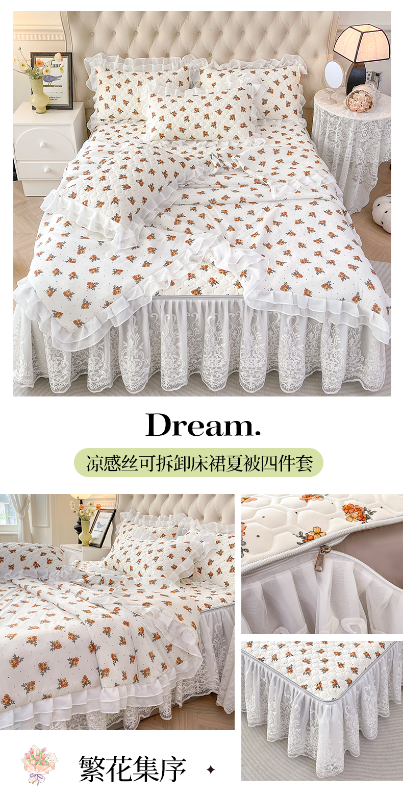 虹星家纺 2024新款凉感丝印花可拆床裙套件-夏被凉席四件套 繁花集序