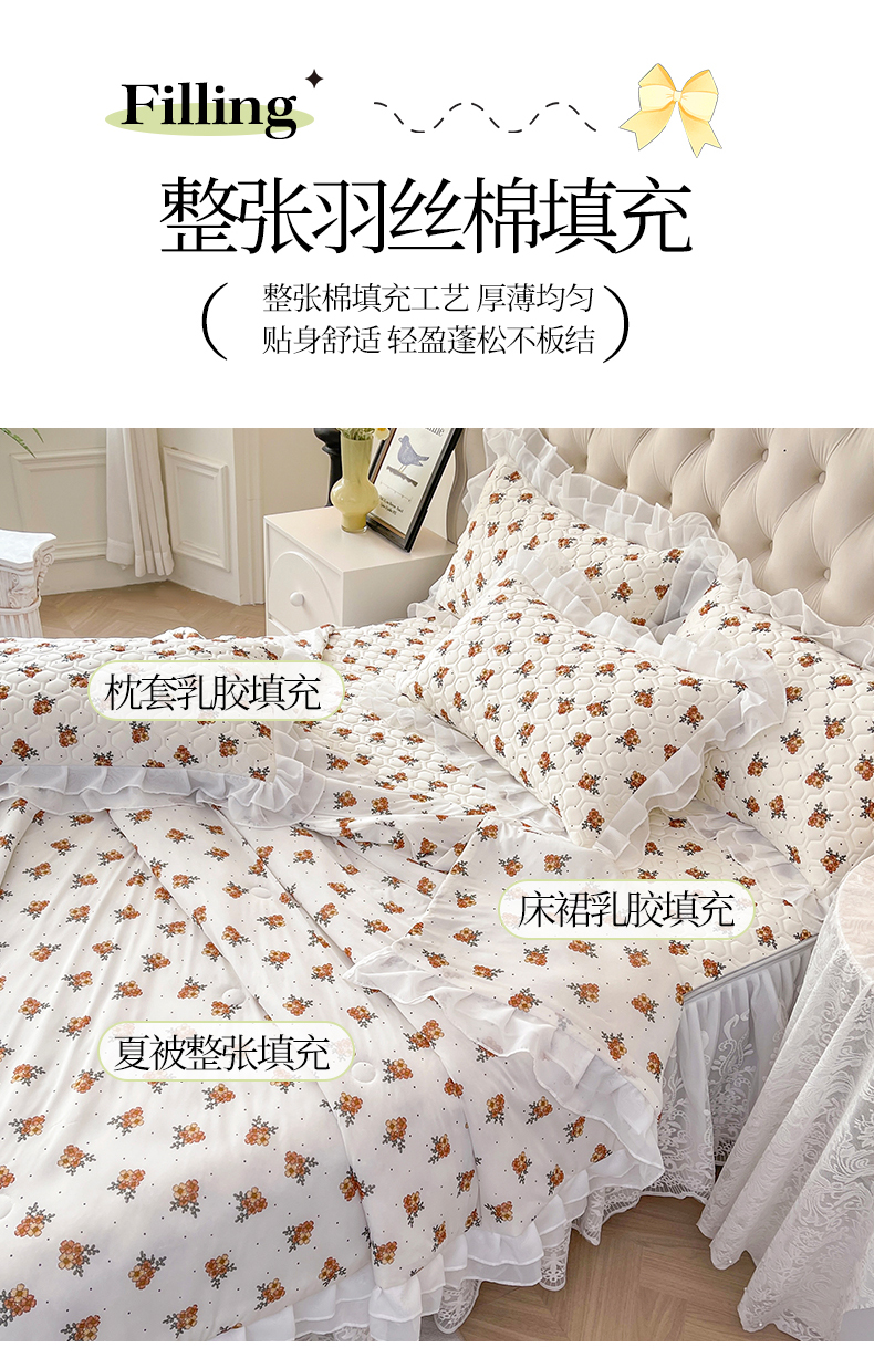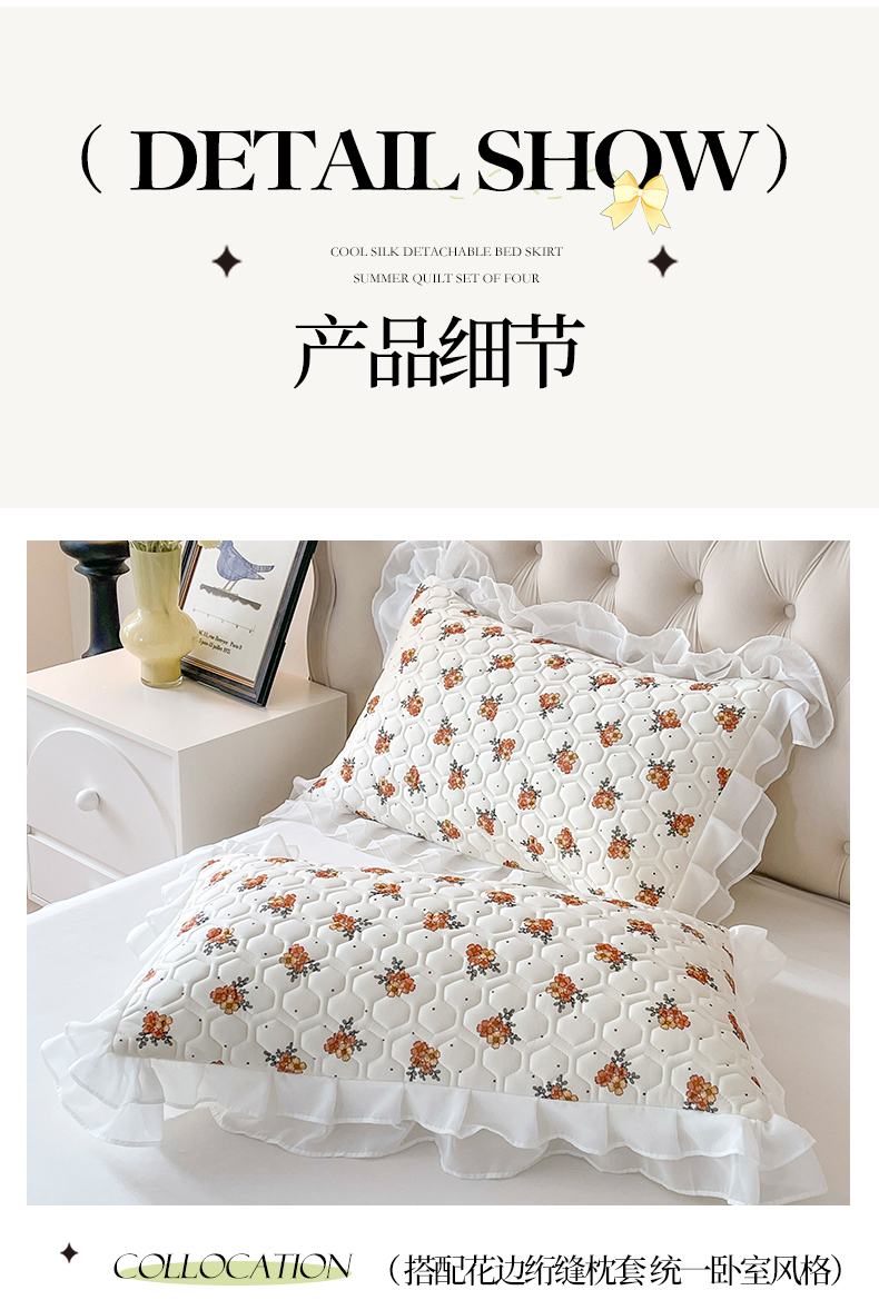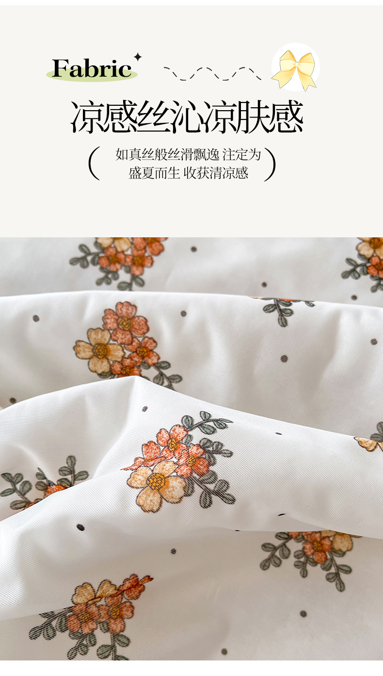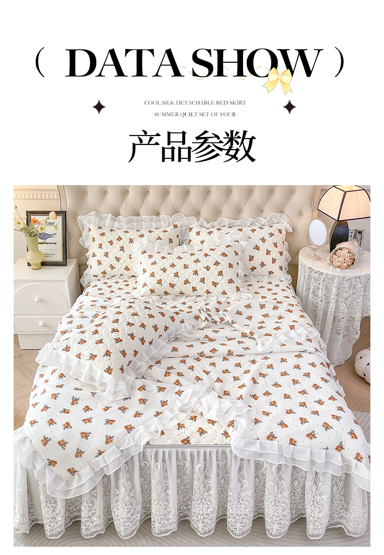 商品名称:虹星家纺 2024新款凉感丝印花可拆床裙套件-夏被凉席四件套 繁花集序
